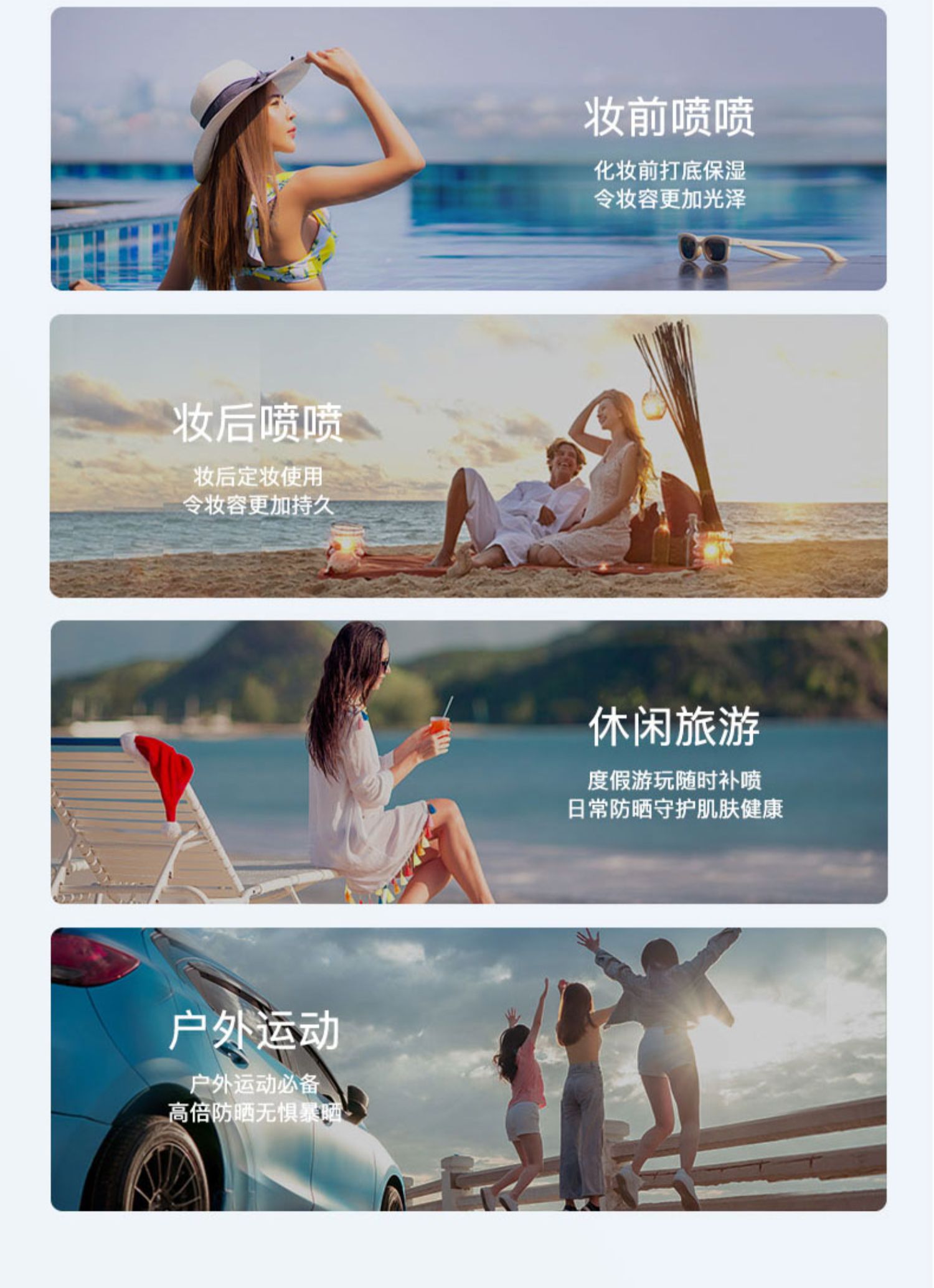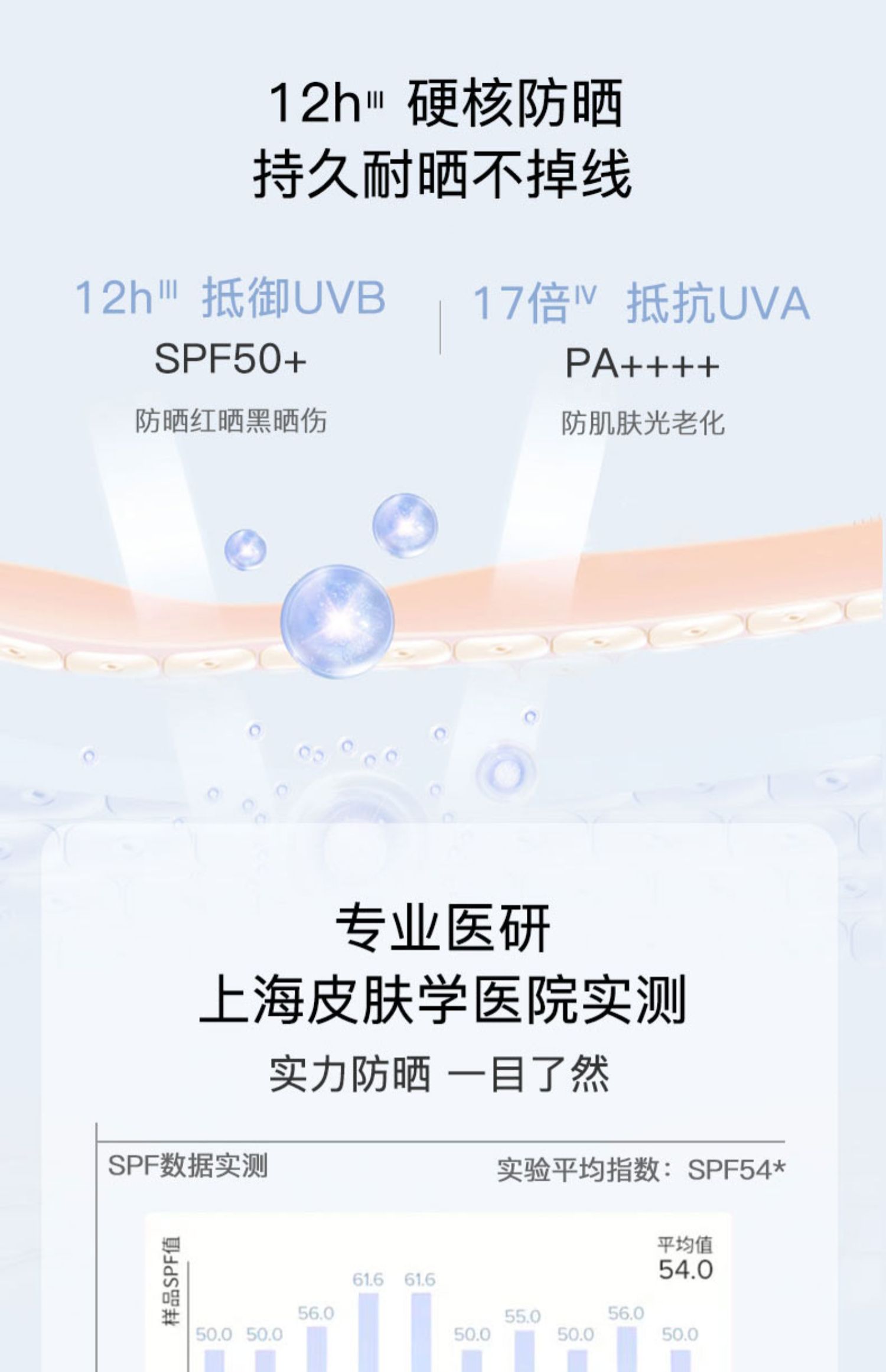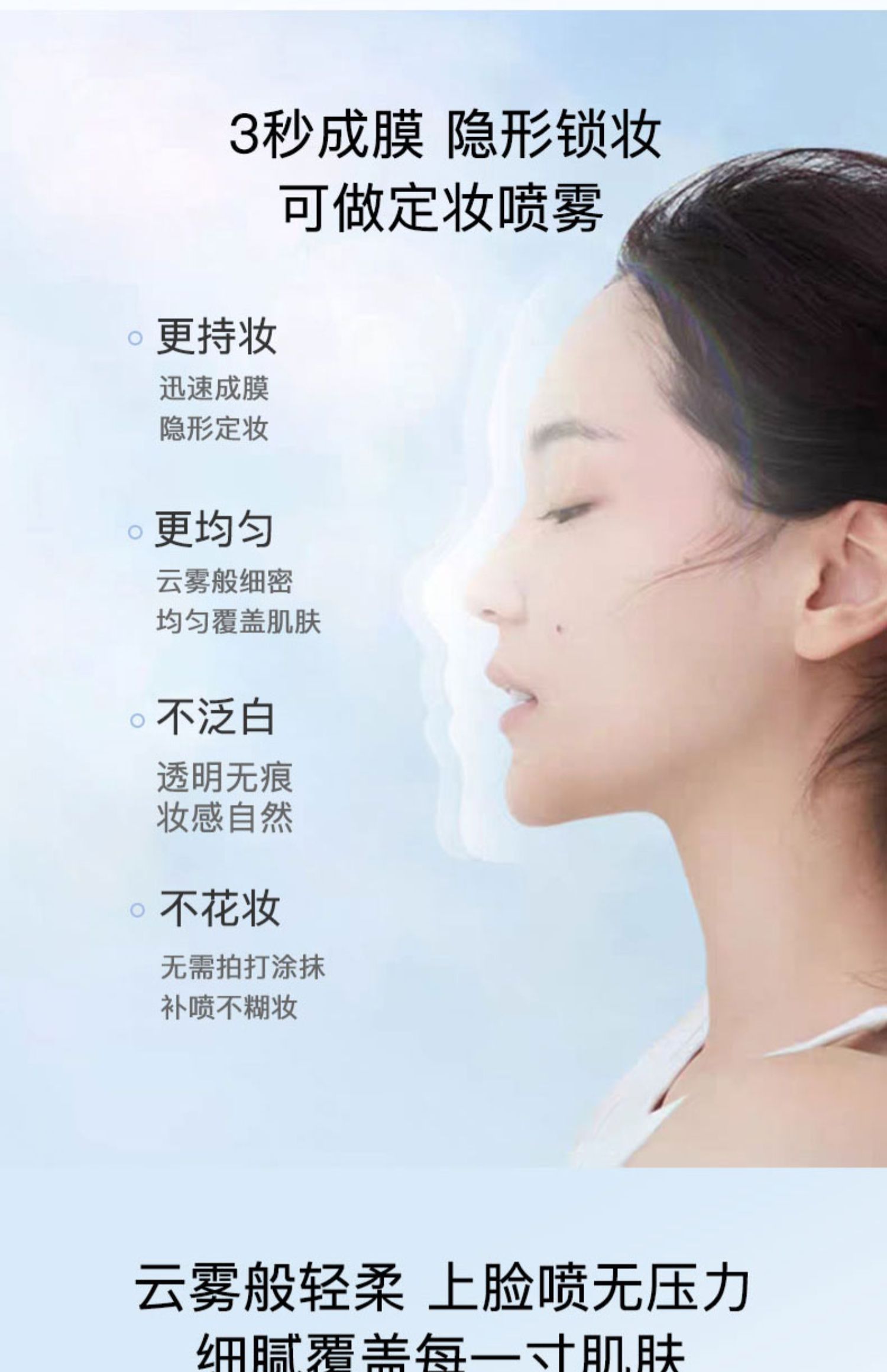 商品简介:囤货装,一喷成膜,UA裸感,高倍防晒SPF50+,透明质酸精华,保持湿润,清爽不油腻,透明不花妆,出门必备!【退货运费险】