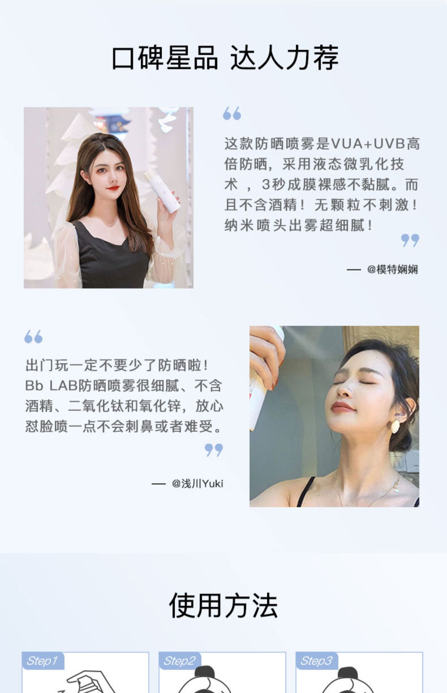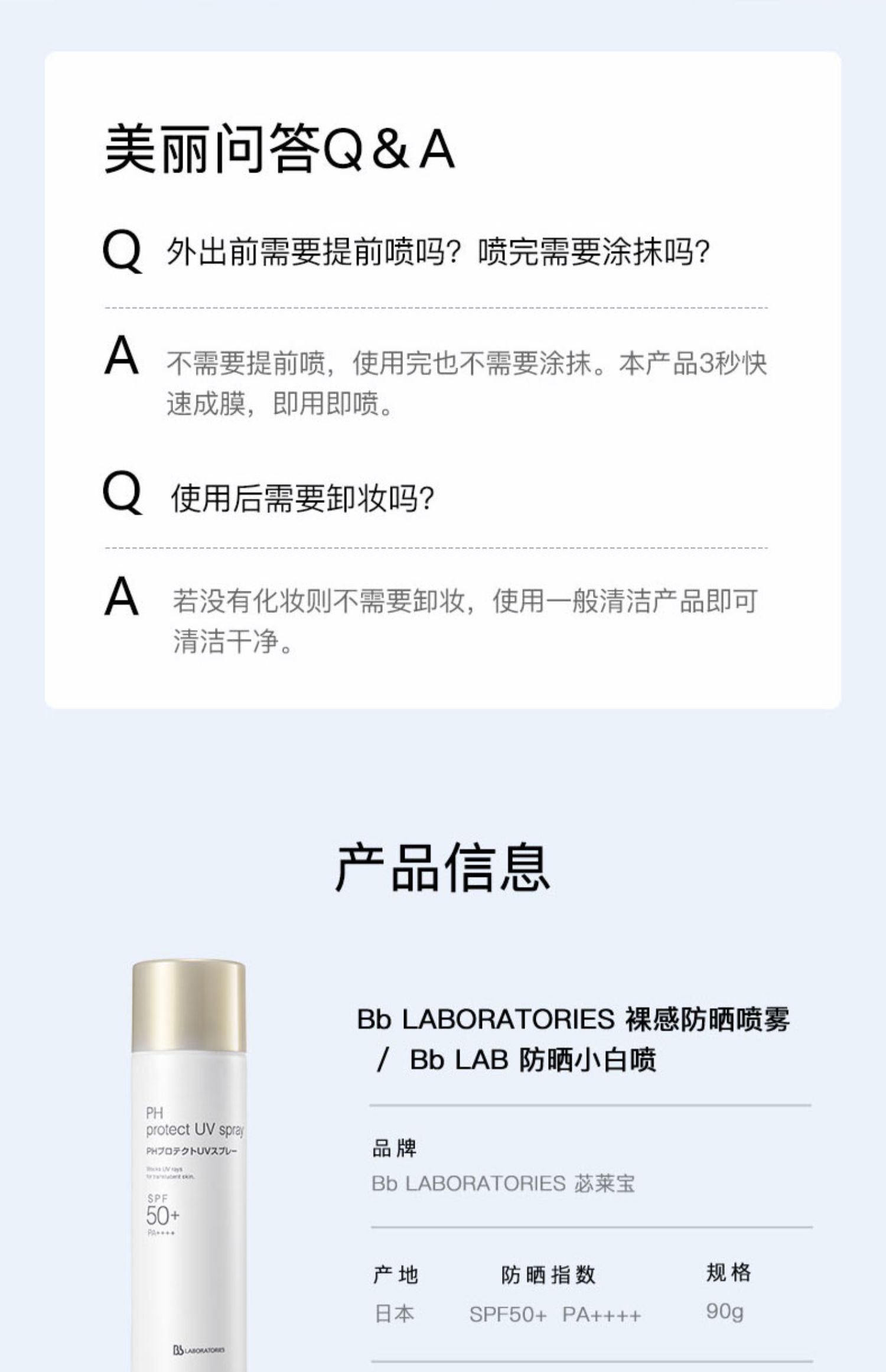 商品介绍:BbLAB苾莱宝防晒喷雾90g