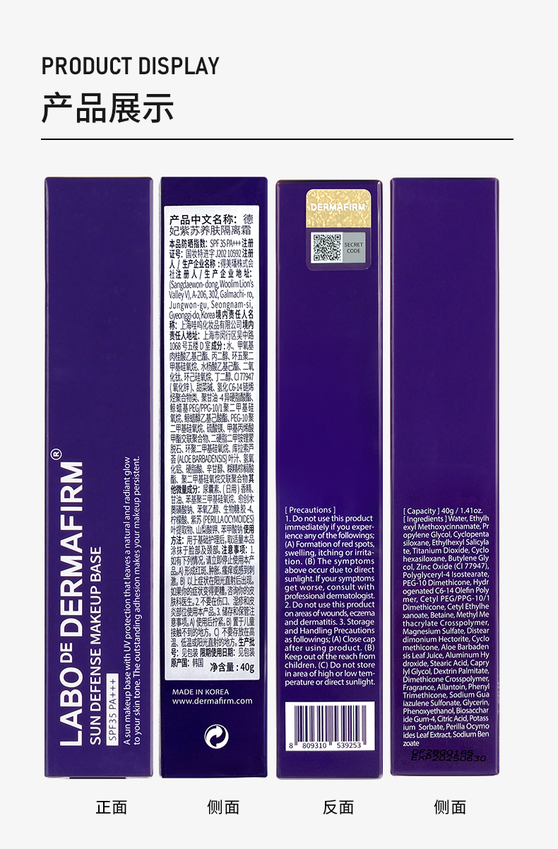 商品名称:德妃紫苏隔离霜妆前乳防晒素颜霜提亮官方旗舰店SPF35