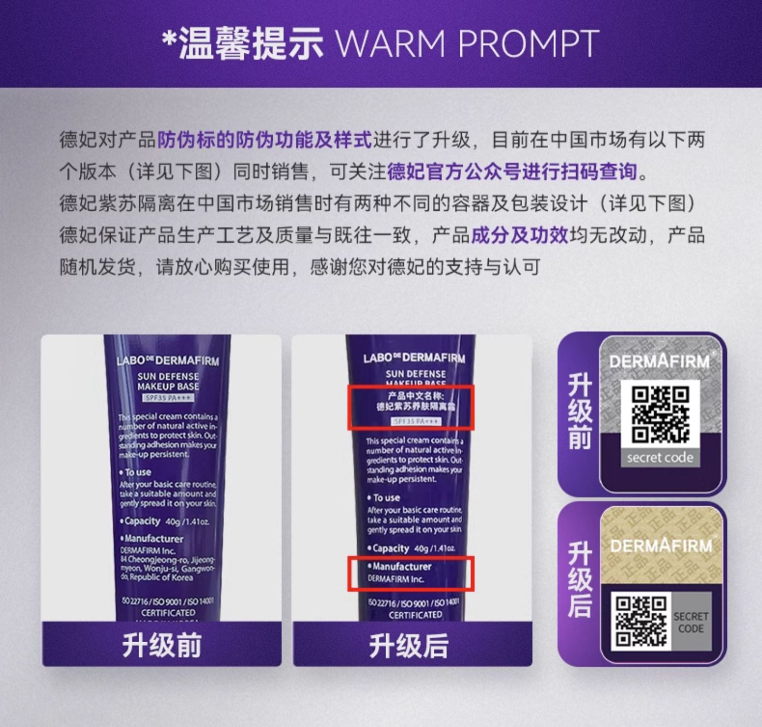 商品介绍:德妃经典款紫苏隔离霜40g*2支