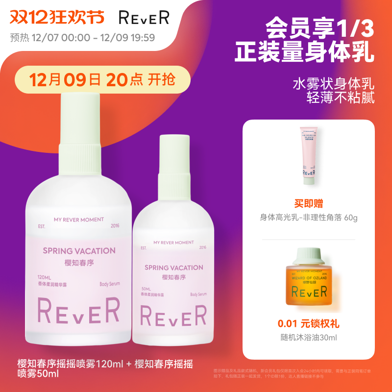 商品名称:【抢先加购】Rever乐若身体乳喷雾夏季滋润保湿烟酰胺乳纯露补水