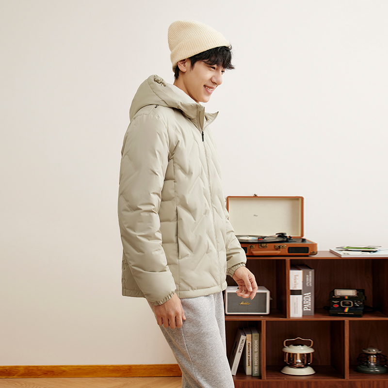 商品简介:三种沉稳百搭色系,超好看~甄选大朵羽绒填充,防风连帽设计,超暖和!