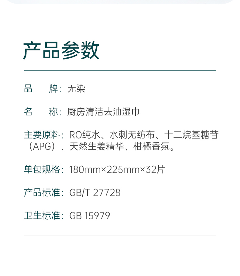 商品介绍:无染厨房去油去污湿巾32片*4包