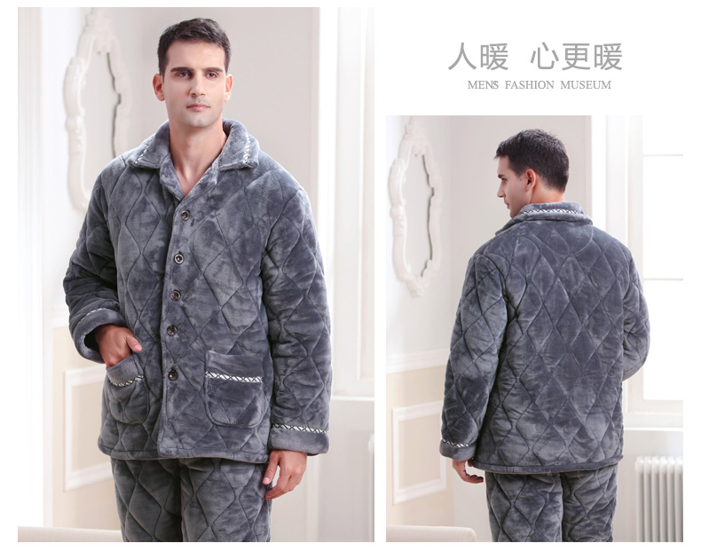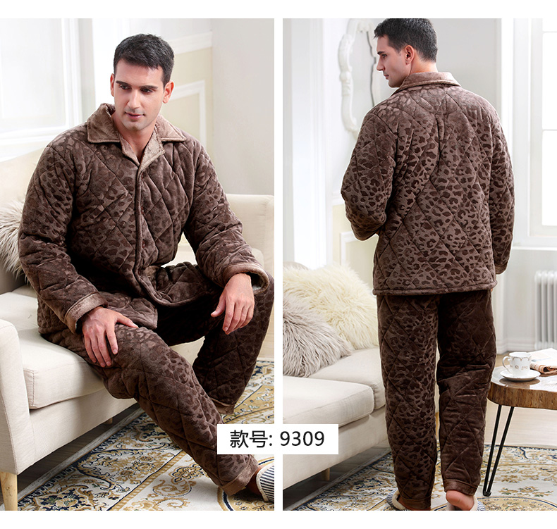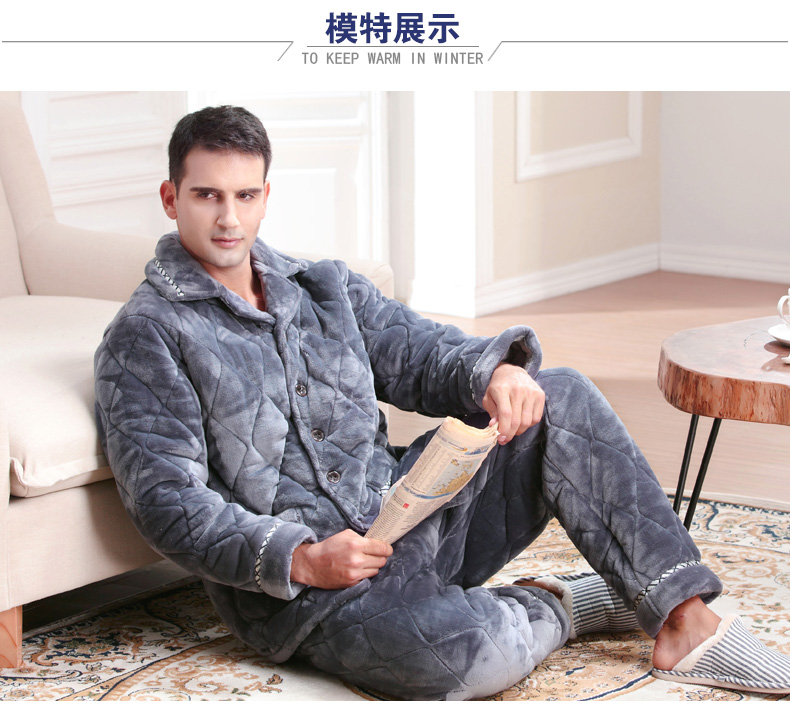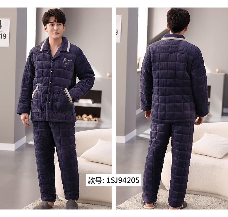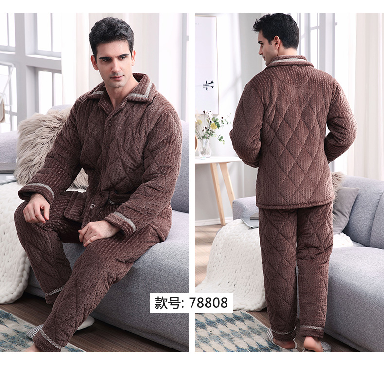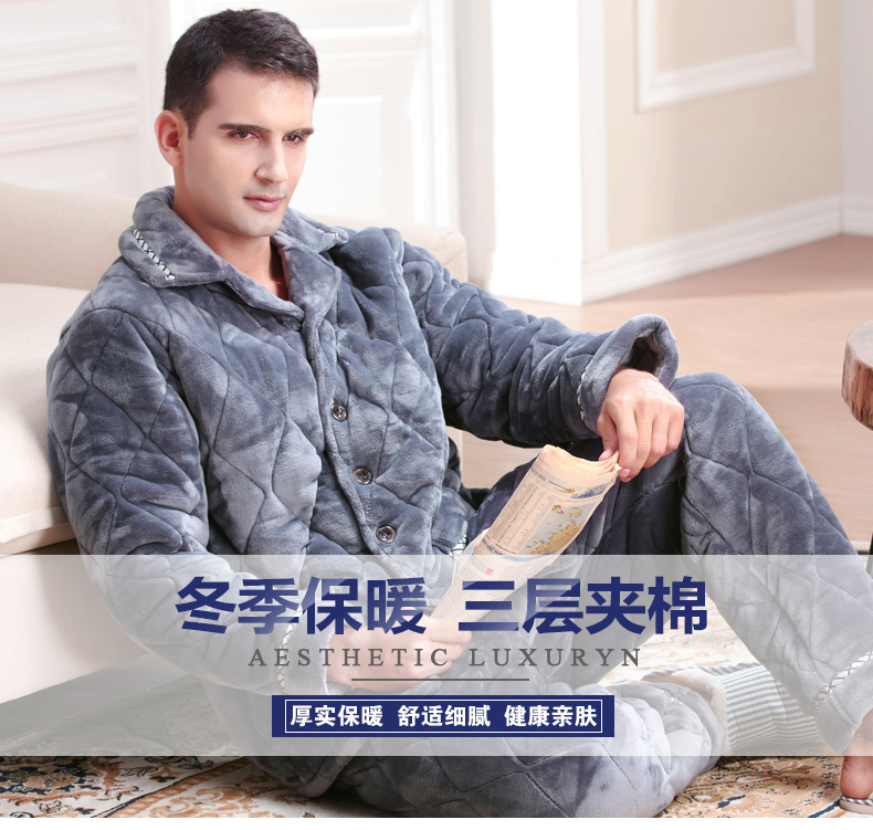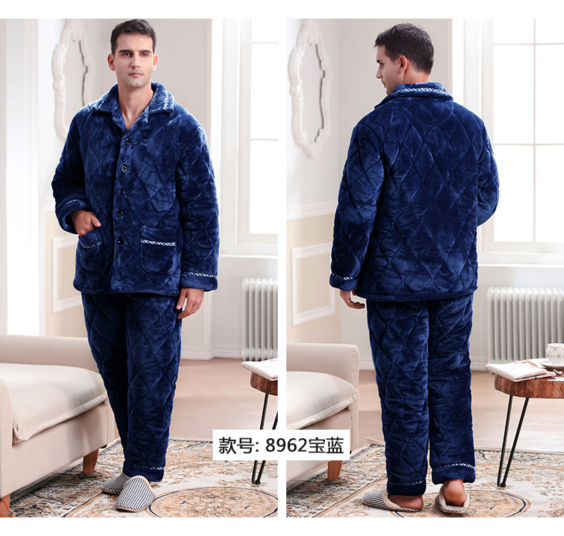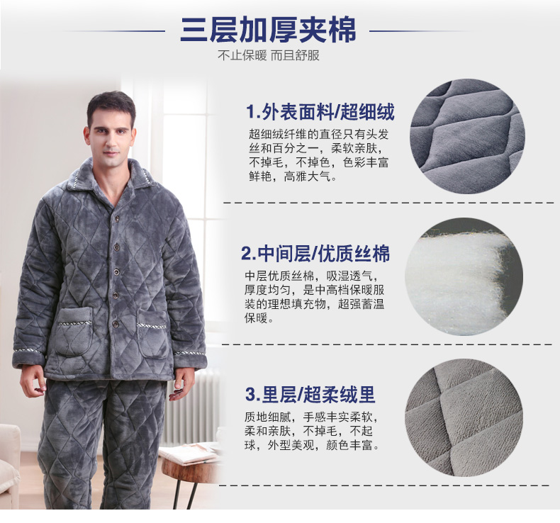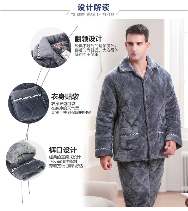 商品介绍:中老年睡衣男士冬季加厚加绒超厚三层夹棉