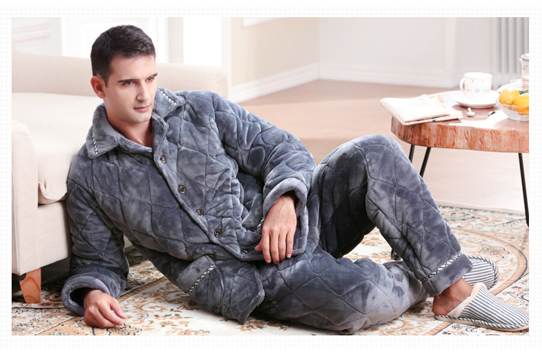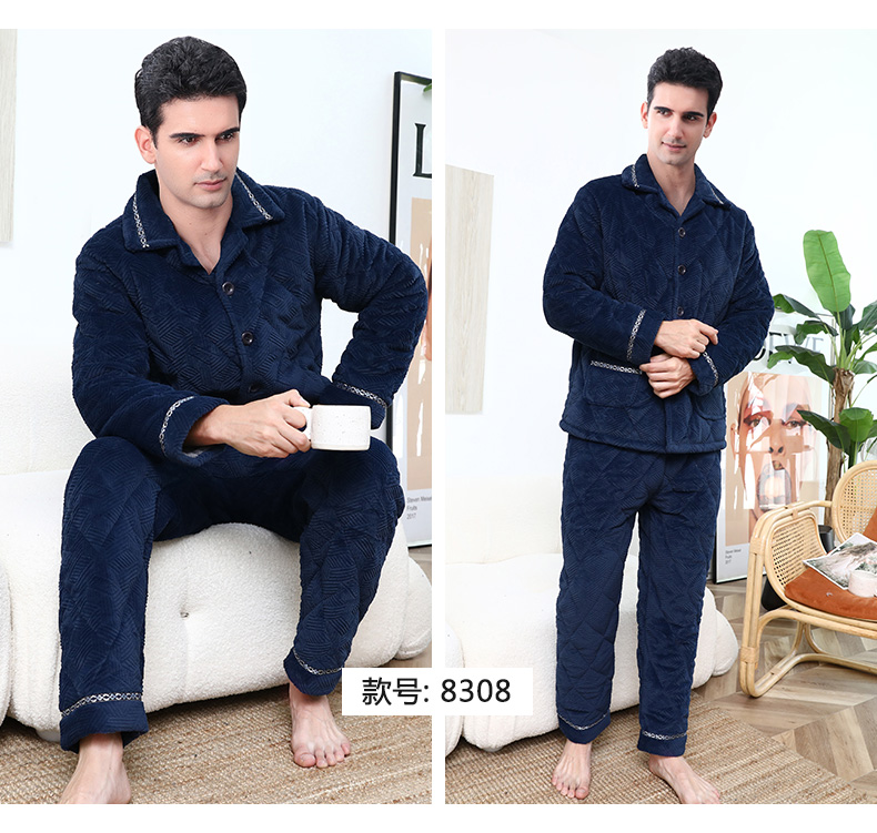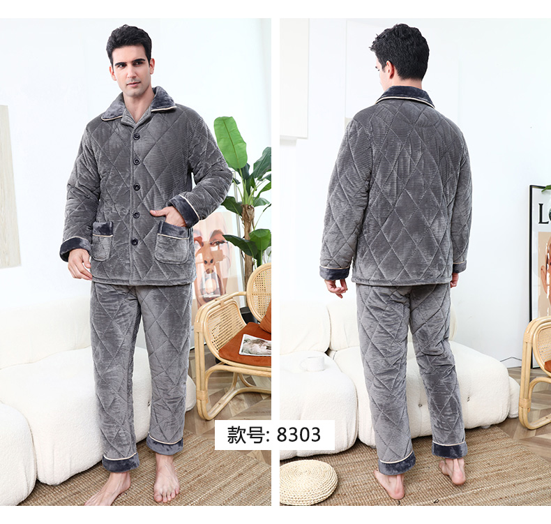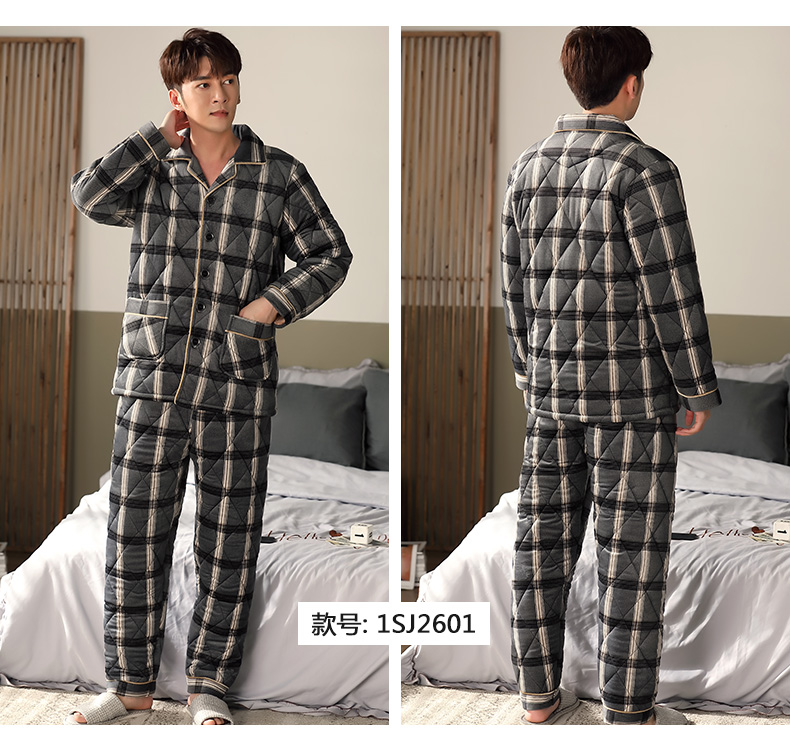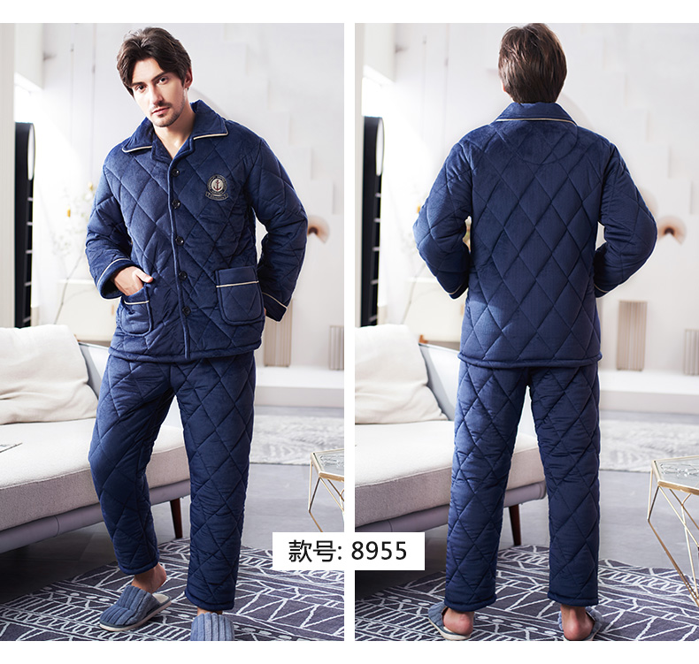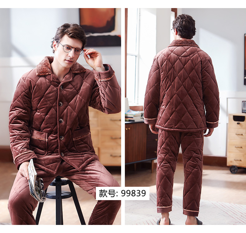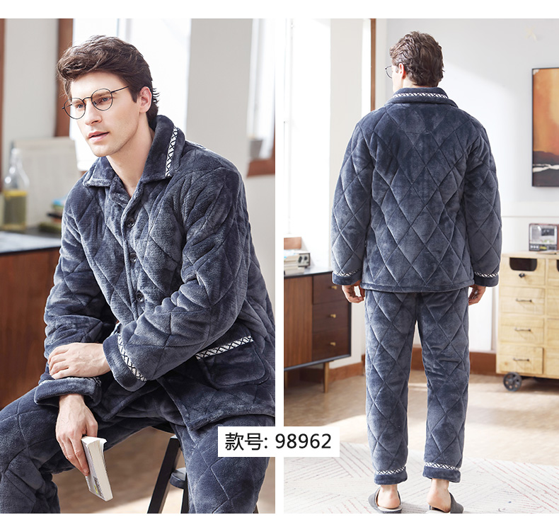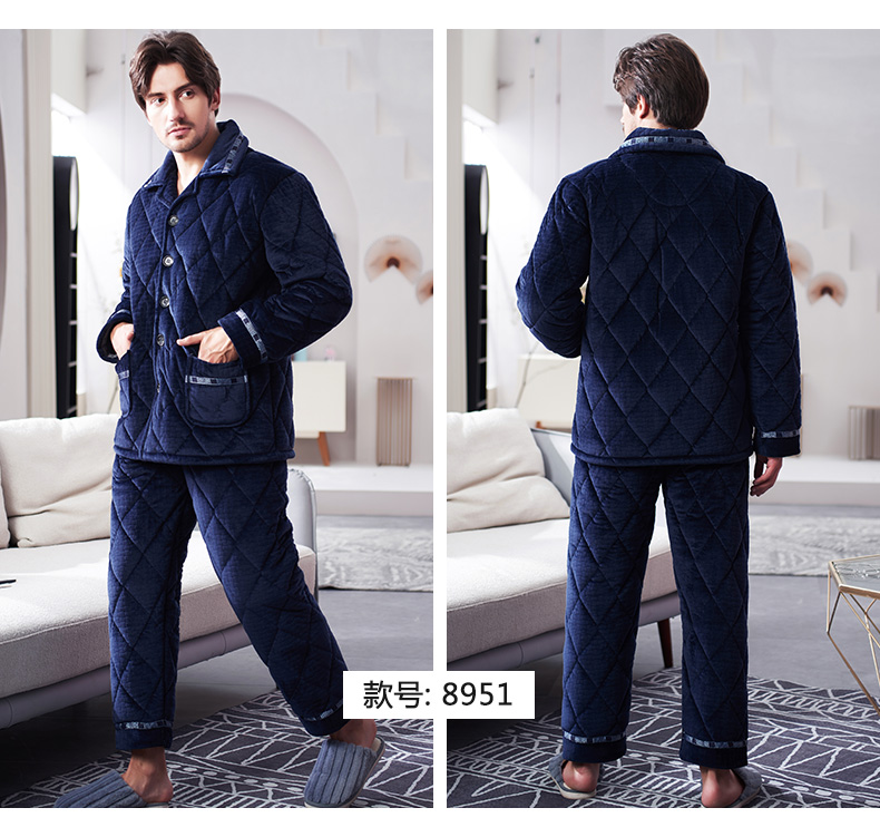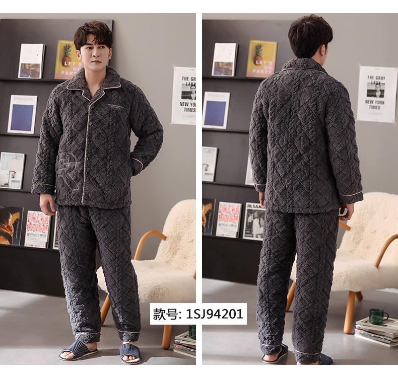 商品介绍:中老年睡衣男士冬季加厚加绒超厚三层夹棉