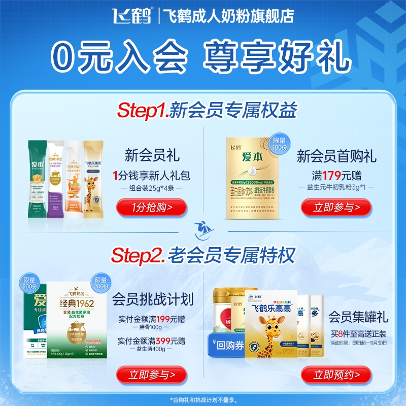 商品介绍:2罐【飞鹤】0蔗糖添加高钙营养奶粉