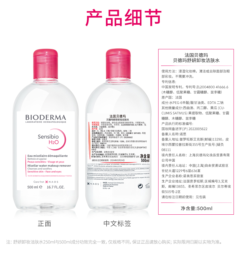 商品介绍:贝德玛温和清洁卸妆水250ml