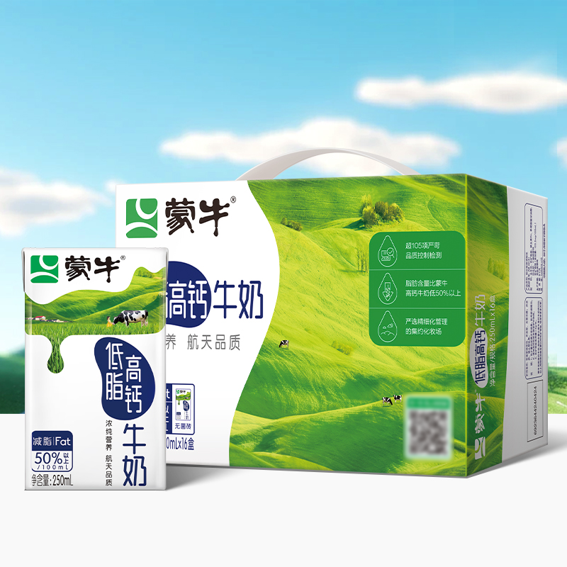 商品介绍:蒙牛低脂高钙牛奶250mL*16盒整箱