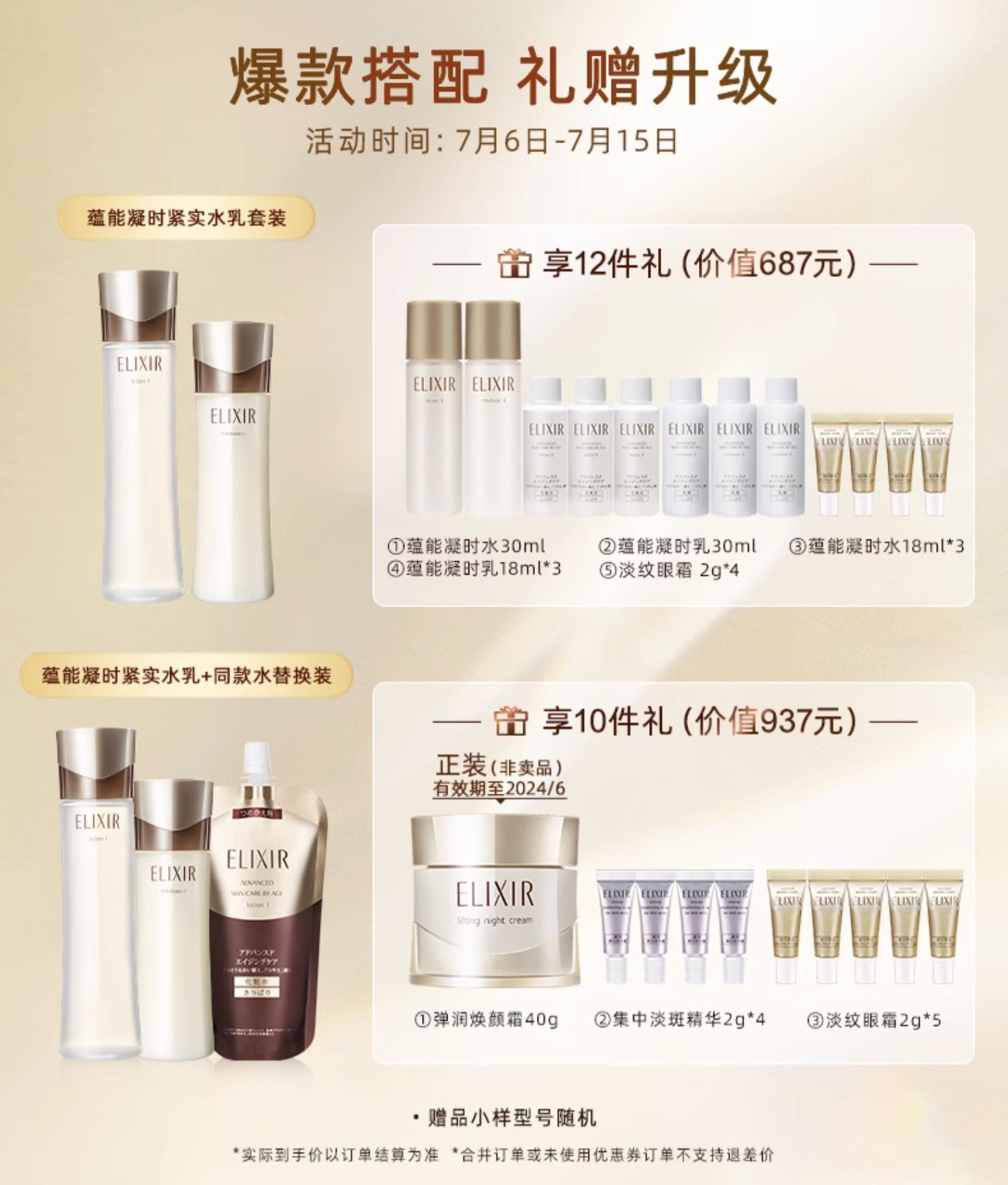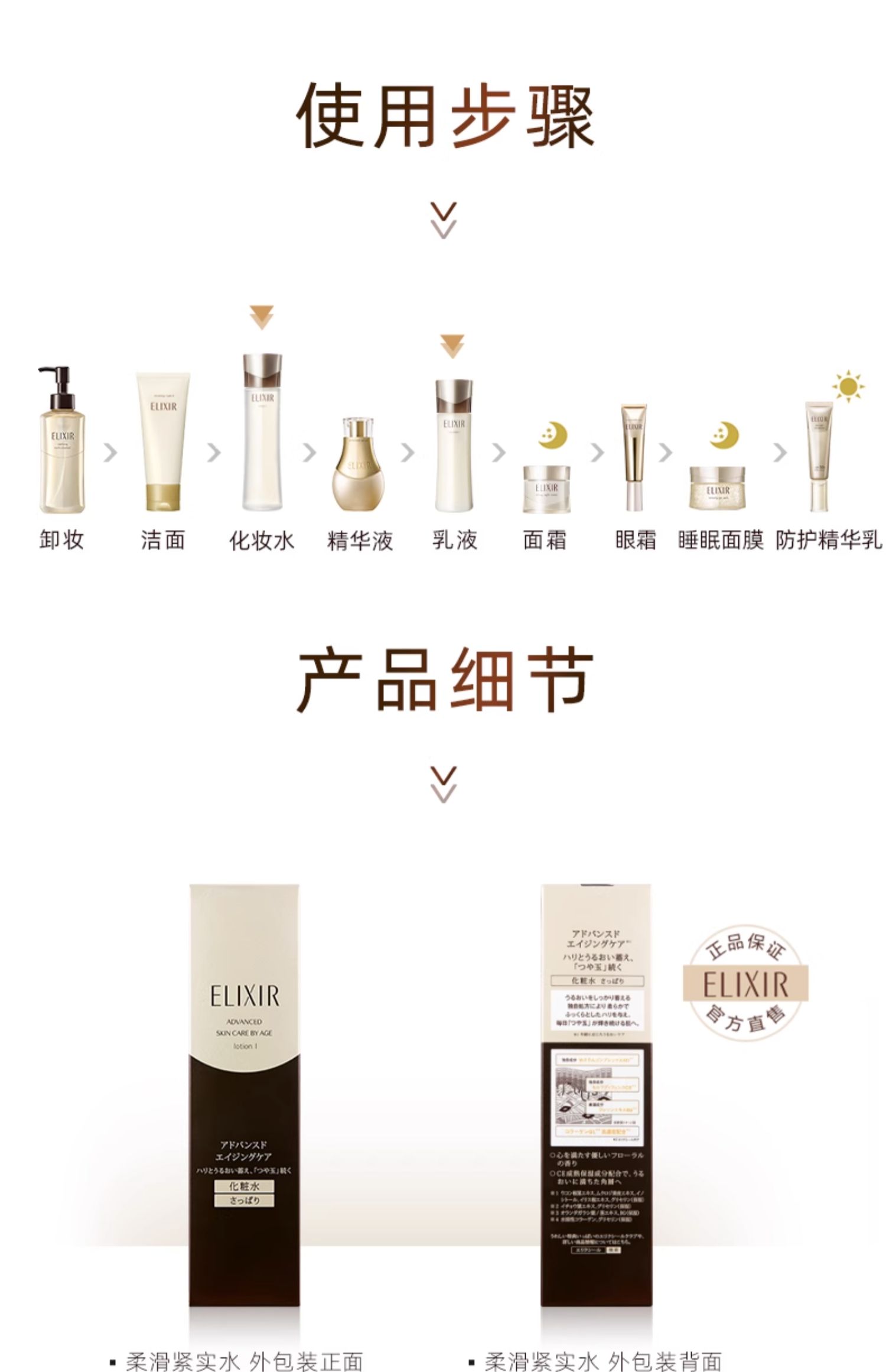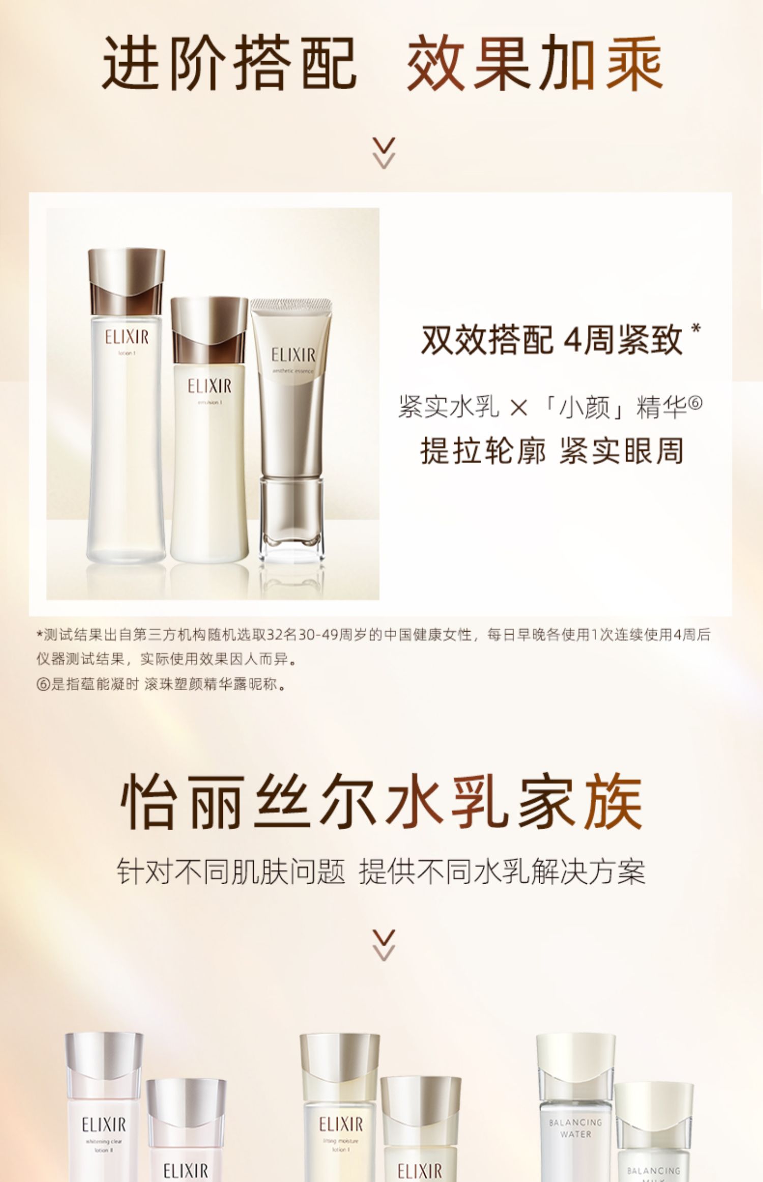 商品名称:【双12加购】Elixir怡丽丝尔黑金水乳紧致抗皱弹润套装护肤保湿