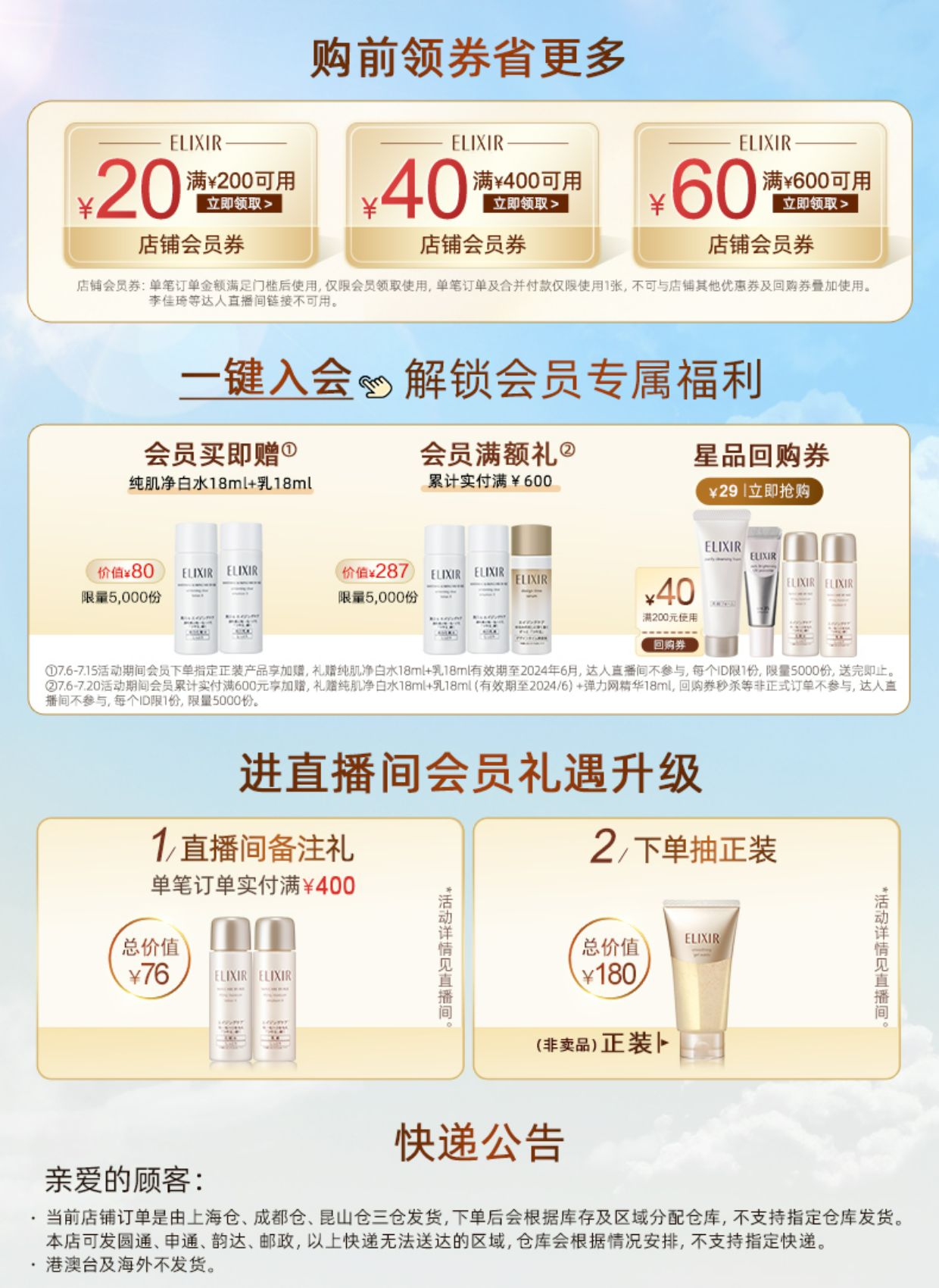 店铺名称:ELIXIR怡丽丝尔官方旗舰店
