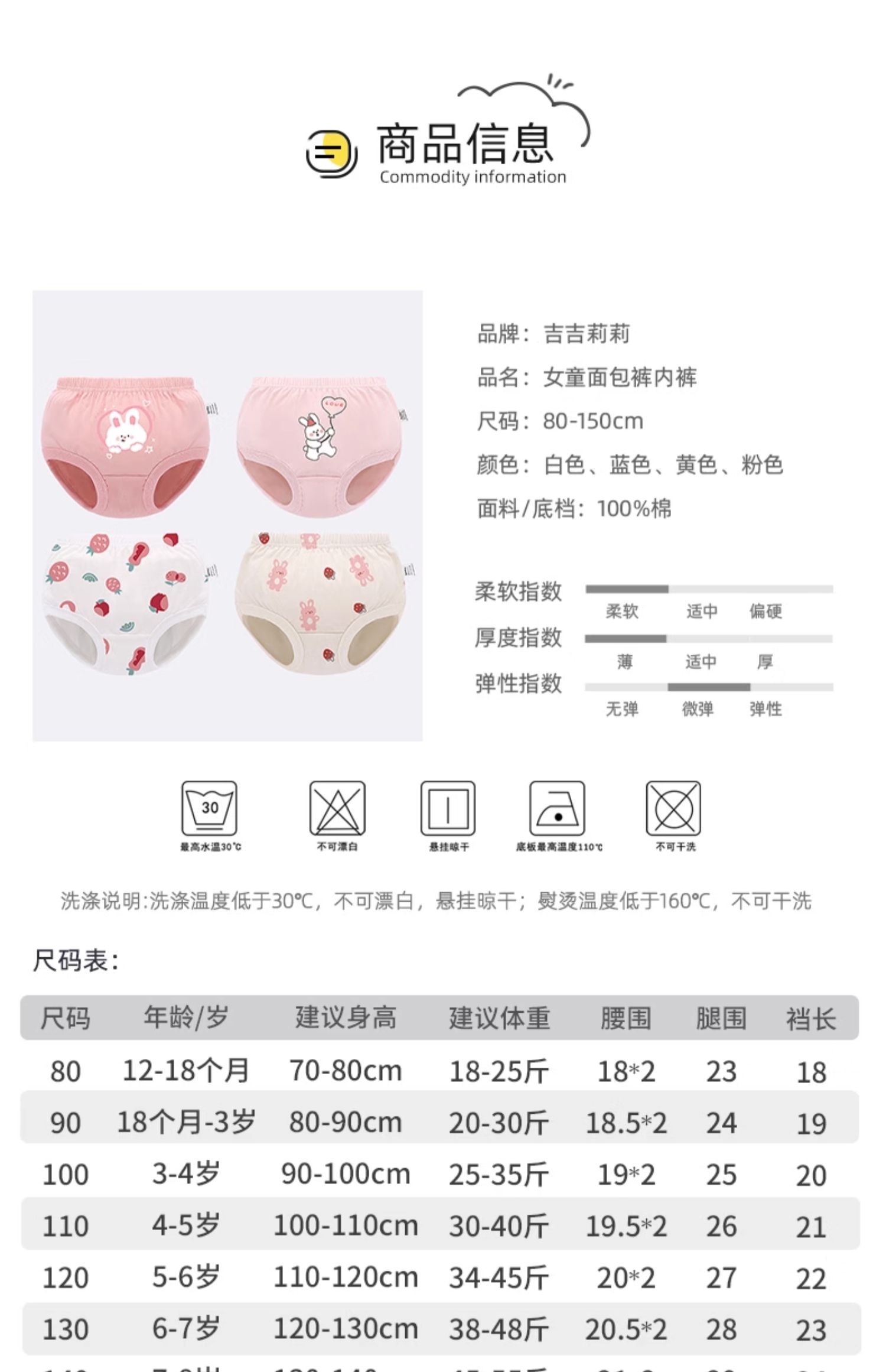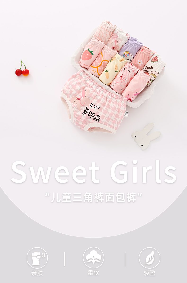 商品介绍:男女童纯棉内裤三角裤面包裤4条装