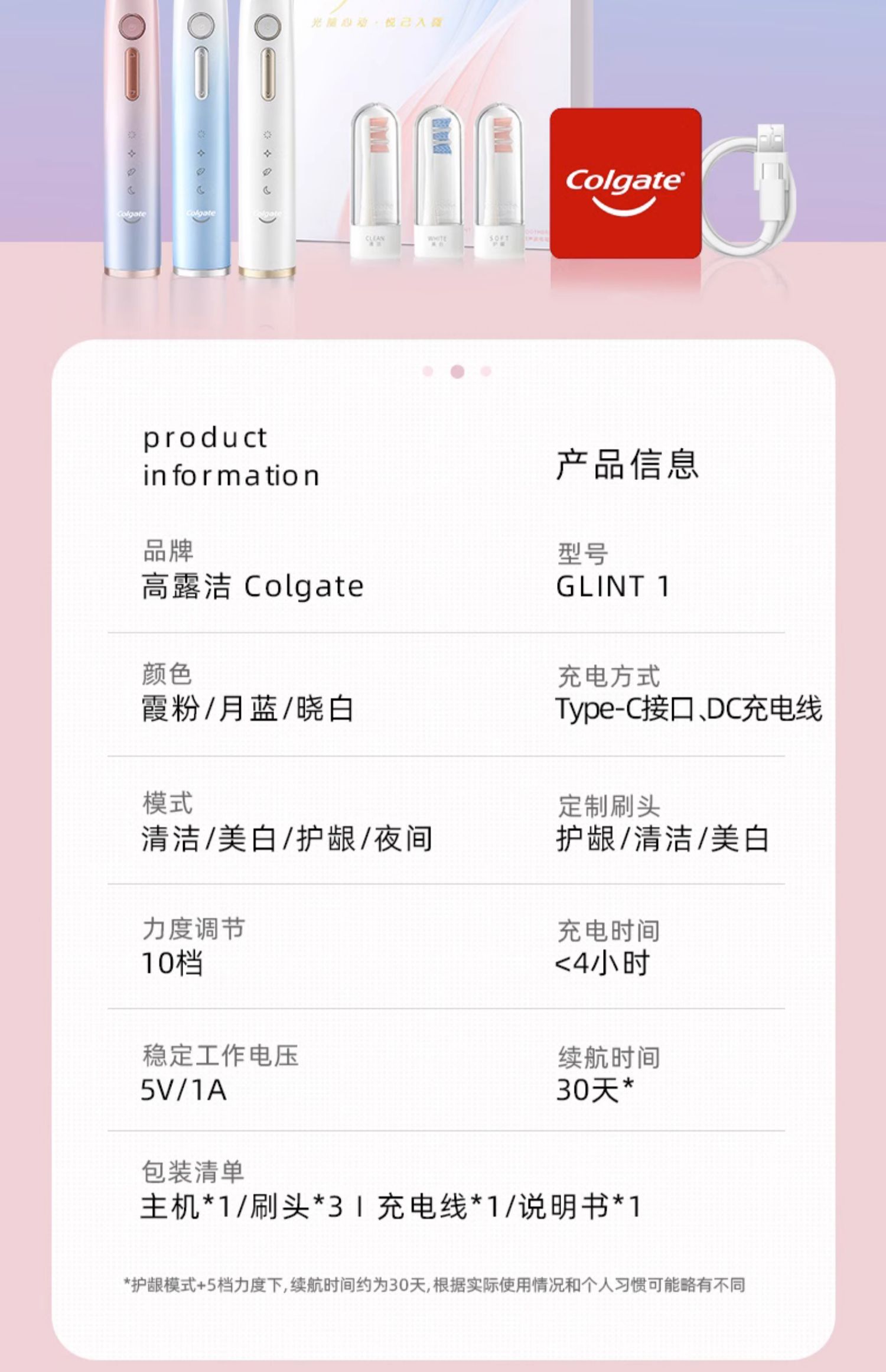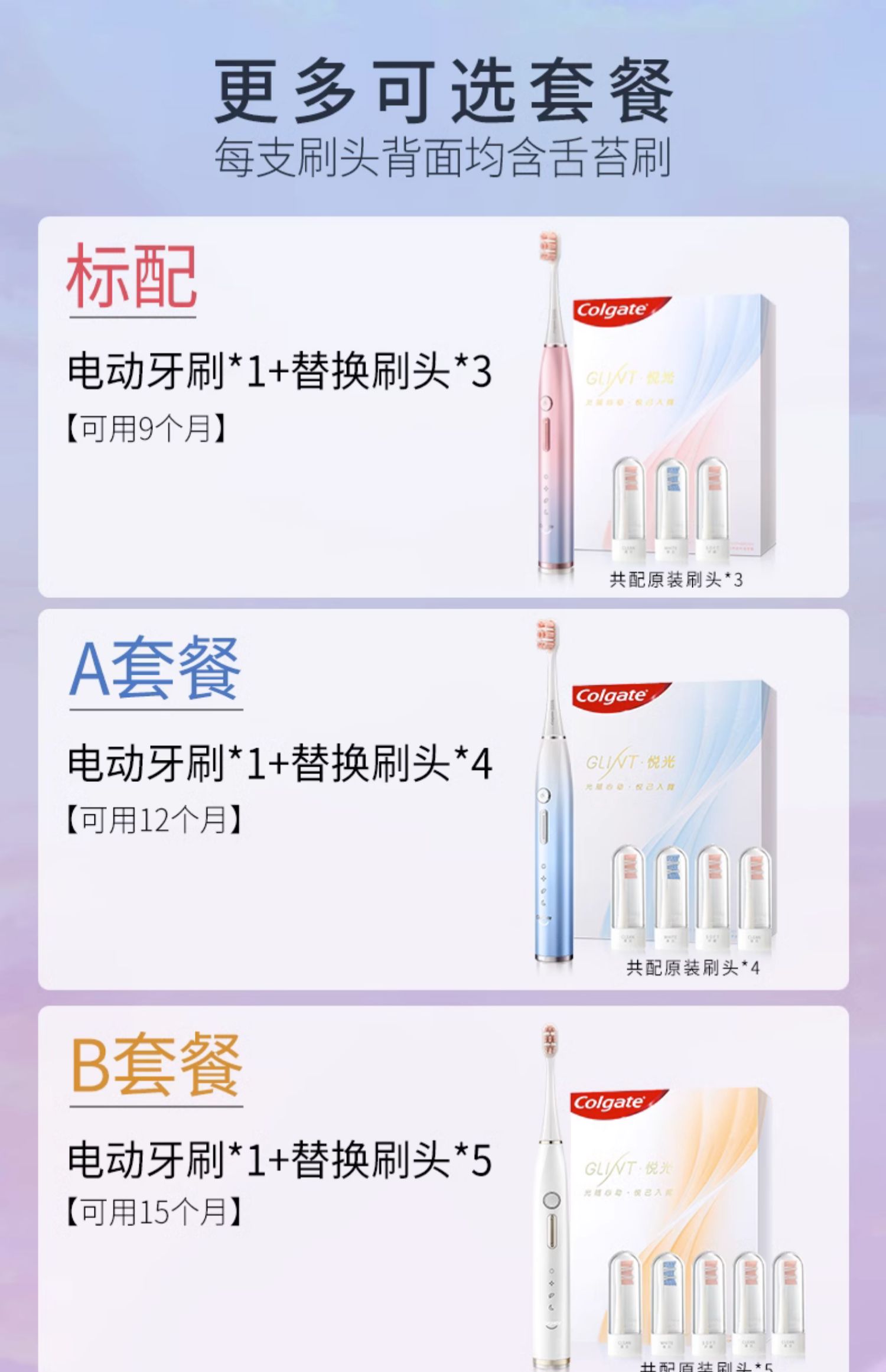 商品介绍:【高露洁】悦光刷成人电动牙刷3刷头