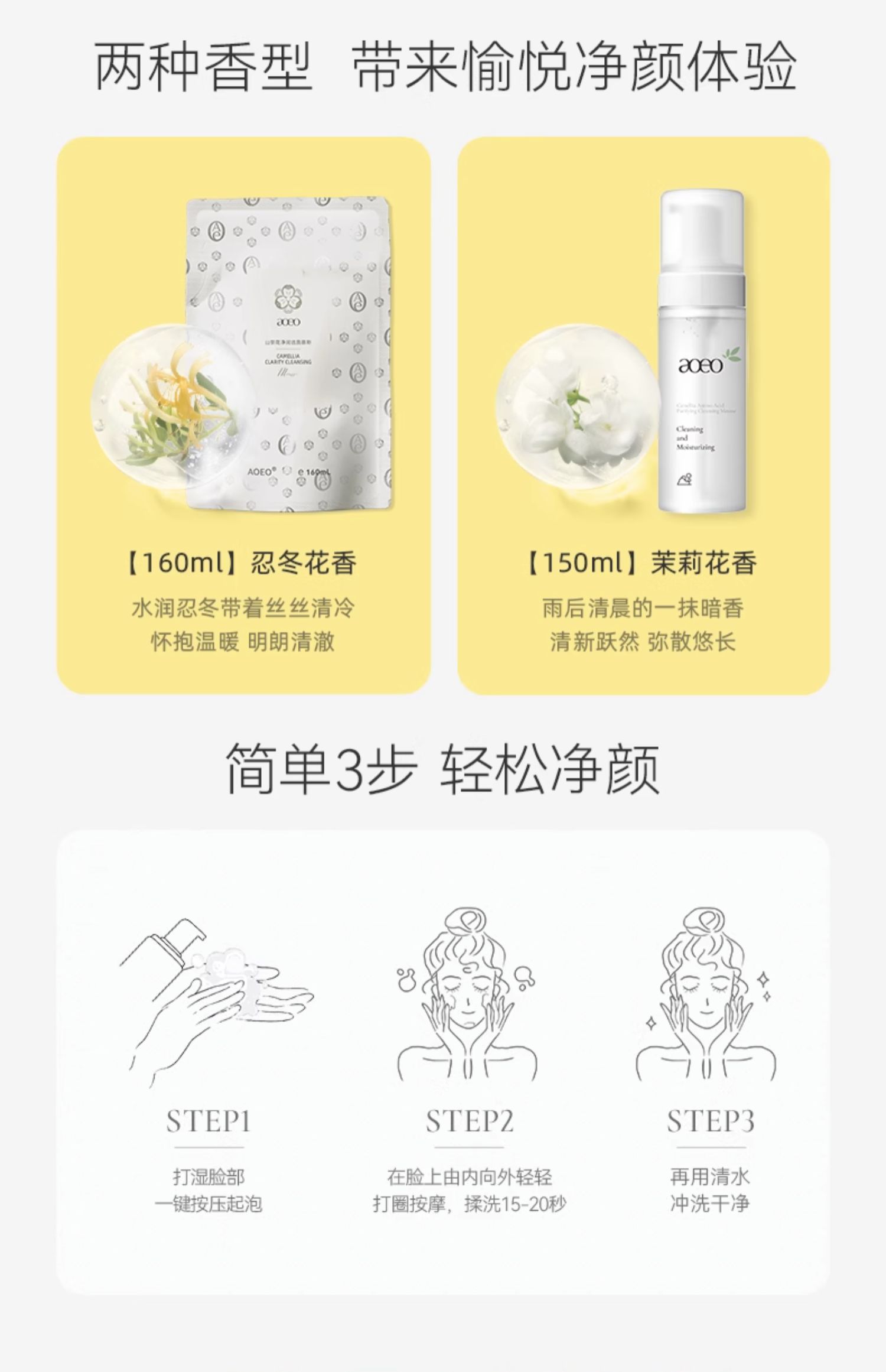 商品名称:【立即抢购】AOEO山茶花洁面慕斯氨基酸表活温和清洁水润敏感肌
