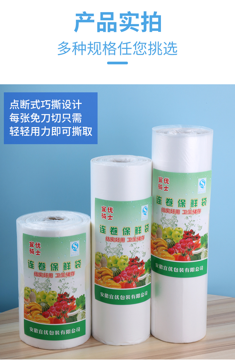 商品简介:【淘宝秒杀+首单】超市同款连卷保鲜袋,大大卷加厚型,1卷够用2年,居家必备的好货,品牌正品保障,食品级材质,不易破漏!平口断点式,易撕取,装水果、蔬菜等好使!