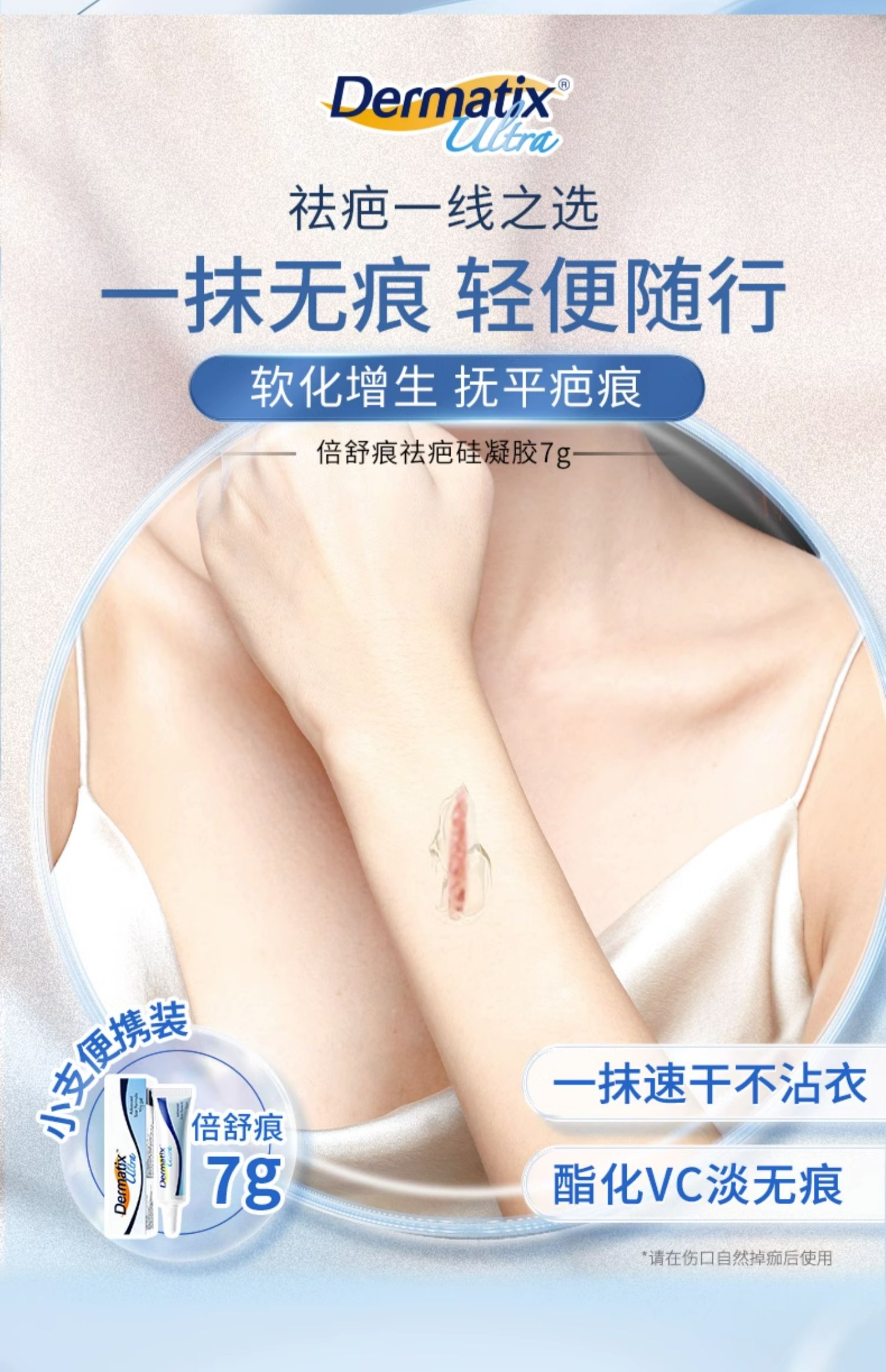 商品简介:【加赠祛疤膏2g,一共到手9g!】【三甲医院同款祛疤膏】Dermatix倍舒痕医用硅酮凝胶祛疤膏,两年内疤痕可祛除!双眼皮手术、甚至剖腹产级别的大手术一样OK!不管大人小孩,日常免不了磕磕碰碰,备一支倍祛疤膏,不担心留疤!敏感肌、孕婴都可放心用~