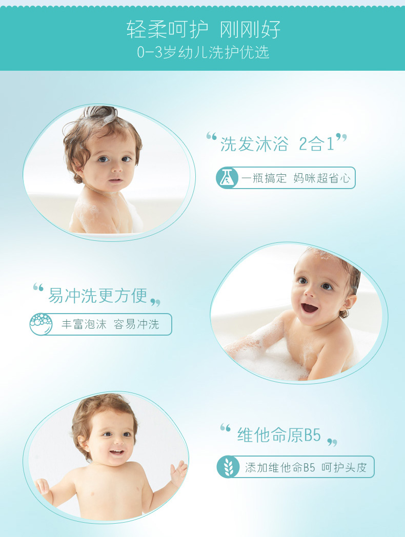 商品介绍:启初宝宝儿童沐浴露洗发水二合一620ml