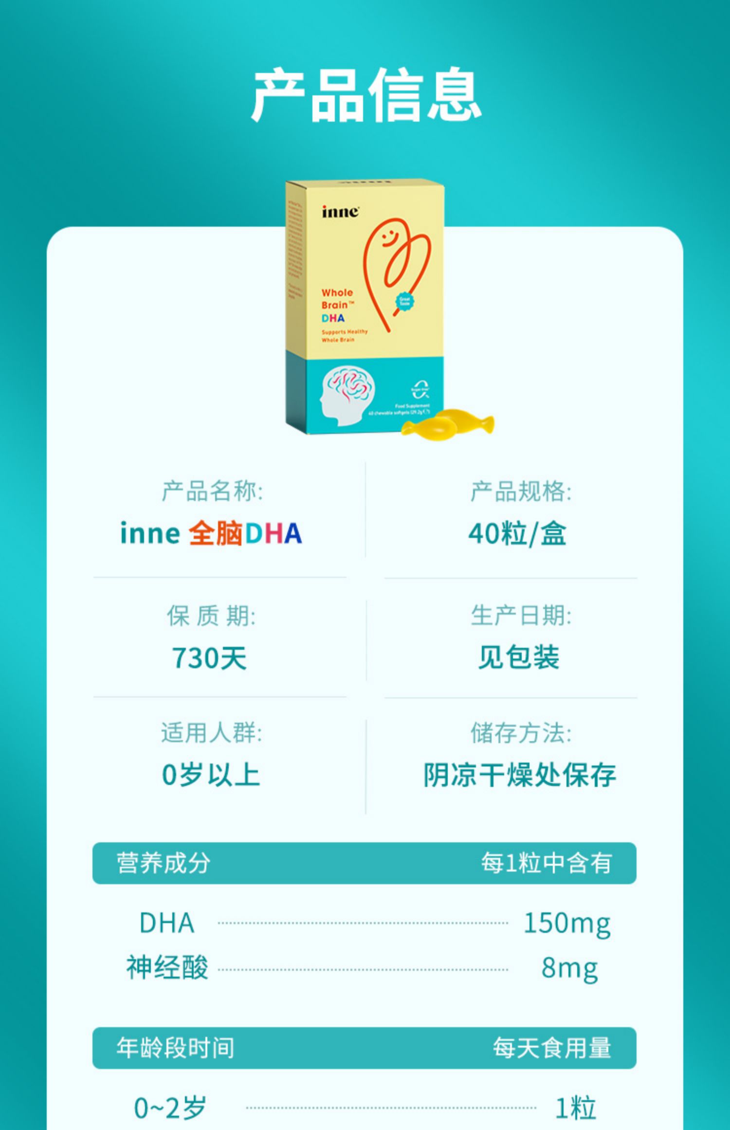 商品名称:inne因你婴幼儿专用dha儿童婴儿dha藻油宝宝dha一岁以上0岁可吃
