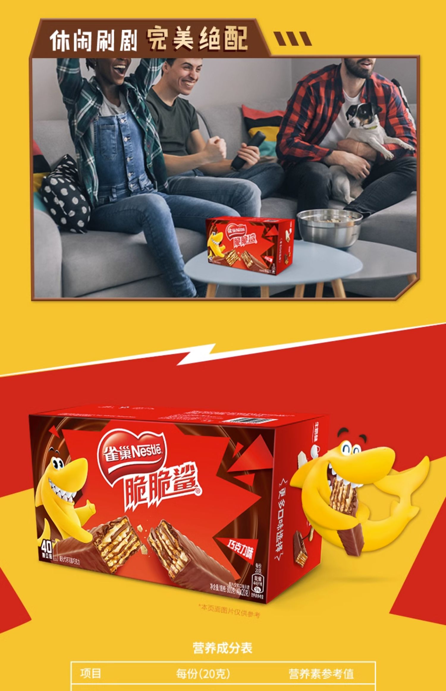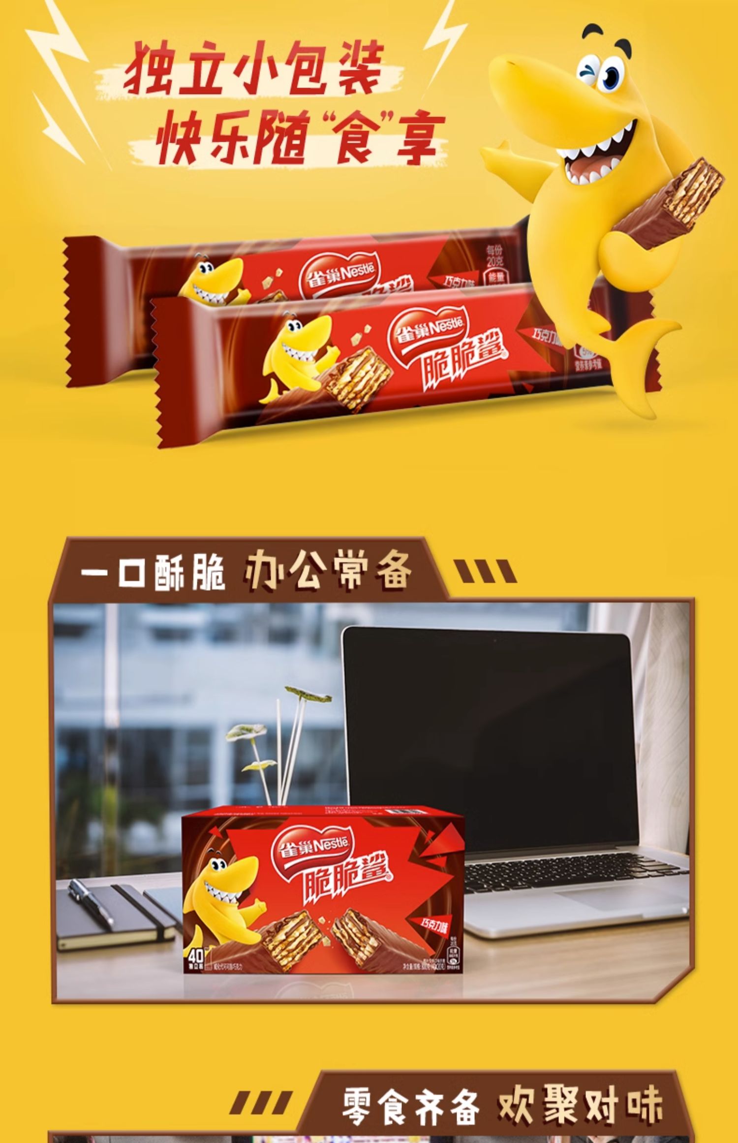 商品介绍:雀巢脆脆鲨巧克力威化饼干40条