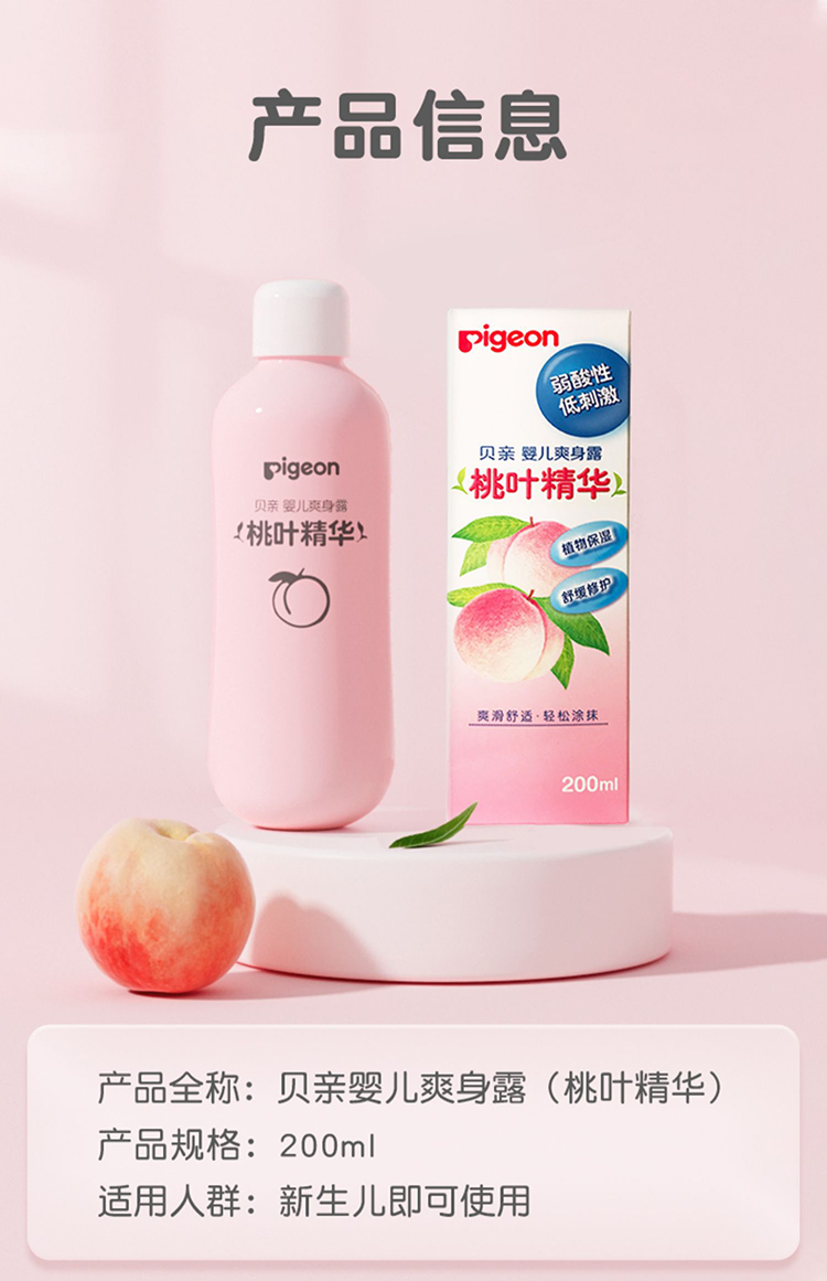商品名称:Pigeon贝亲新生婴儿专用桃叶水200ml*1爽身露秋冬舒缓滋润