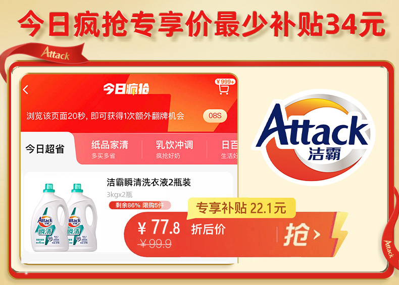 商品介绍:花王洁霸无磷酵素洗衣液3kgx2瓶