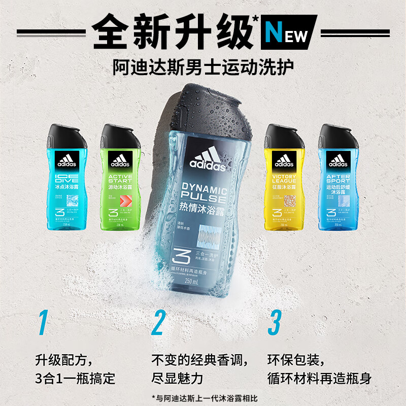 商品介绍:阿迪达斯男士沐浴露洗发洗面奶三效合一