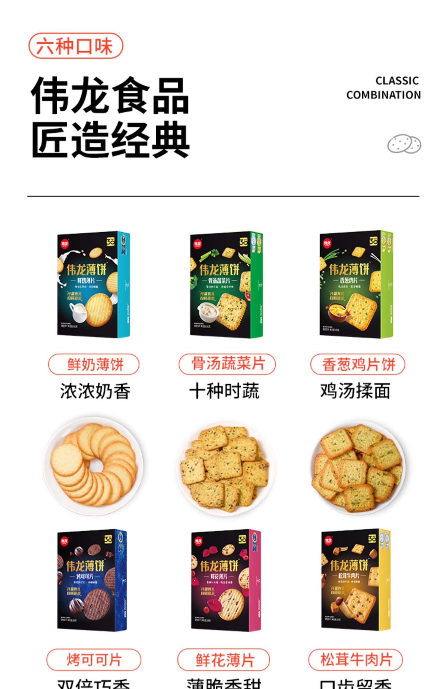 商品介绍:【任选3盒】伟龙薄饼小饼干180g*3盒共540g