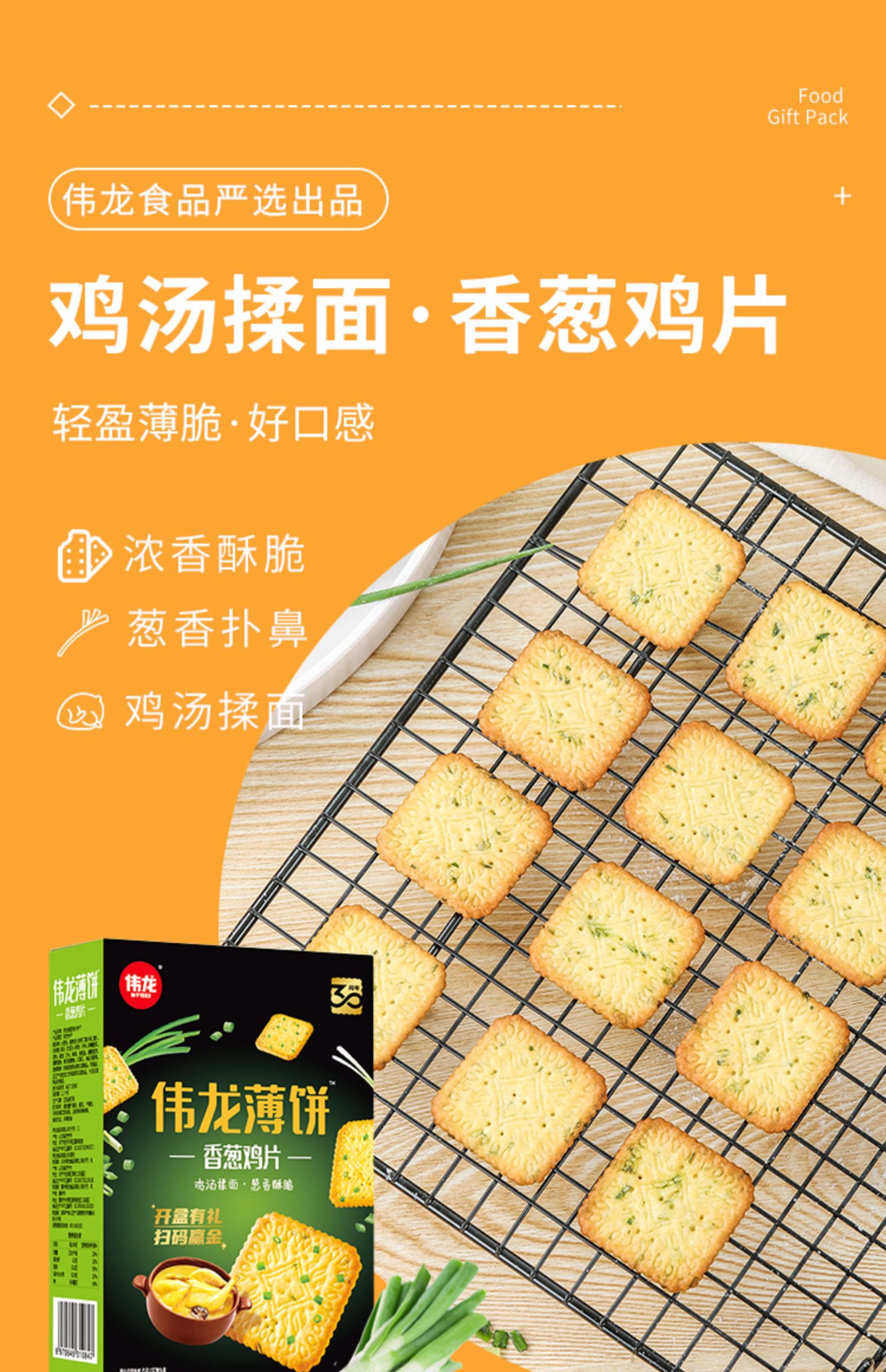 商品名称:【60元任选6件】伟龙小饼干办公室囤货小零食会客香葱鸡片180g