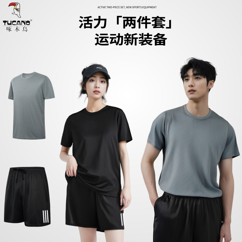 商品介绍:2025新款速干运动套装男女薄款夏季短袖