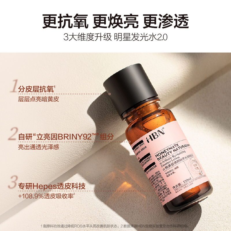 商品介绍:HBNα-熊果苷发光水2.0买赠30ml