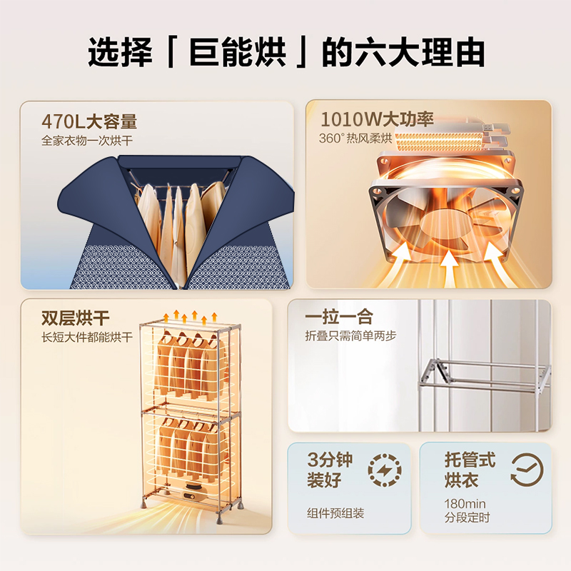 商品简介:【官旗秒发】积米折叠烘干机家用烘衣服一体机双层容量干衣机烘干!