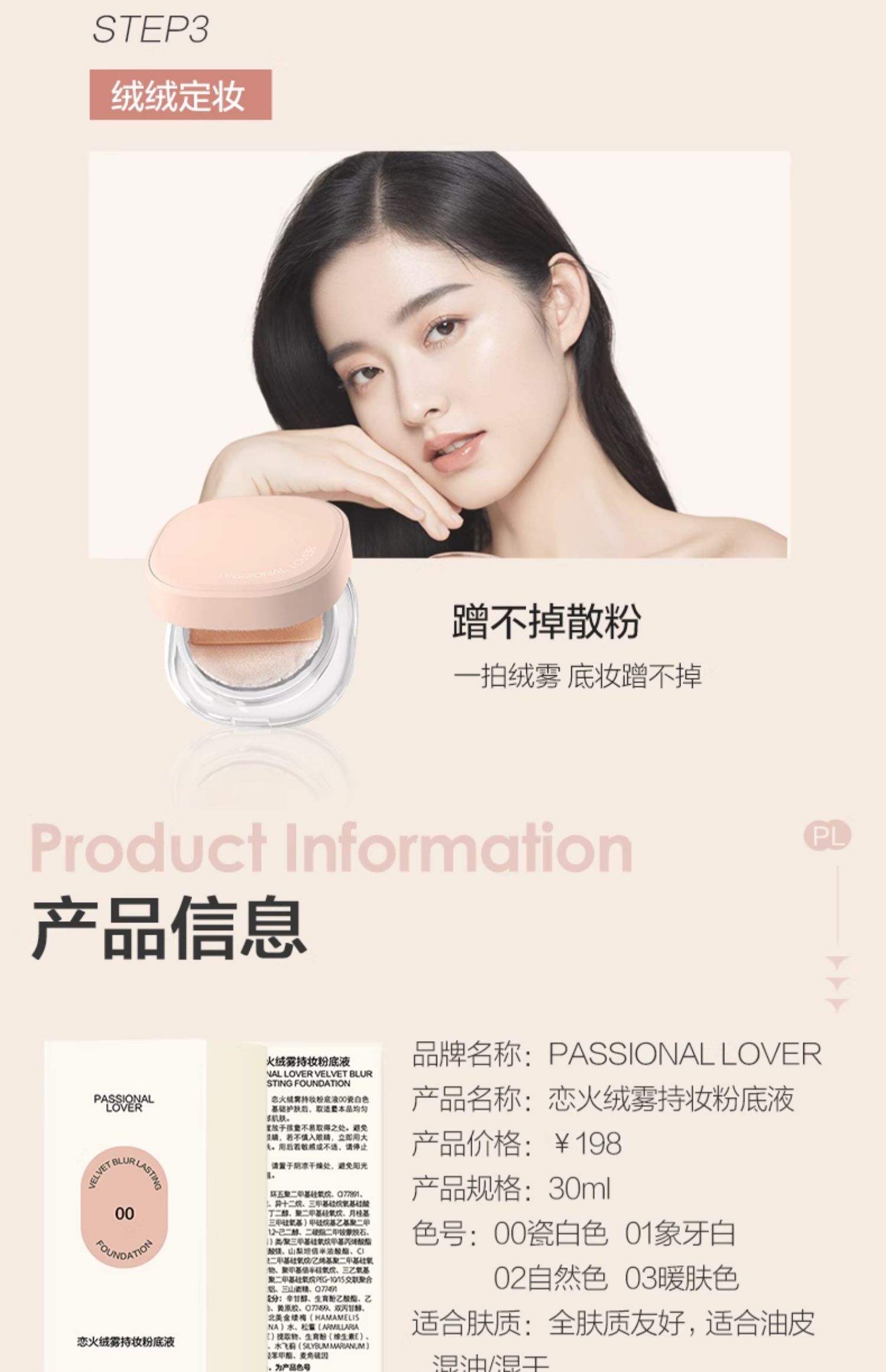 商品介绍:PL蹭不掉粉底液3.0油皮亲妈持久