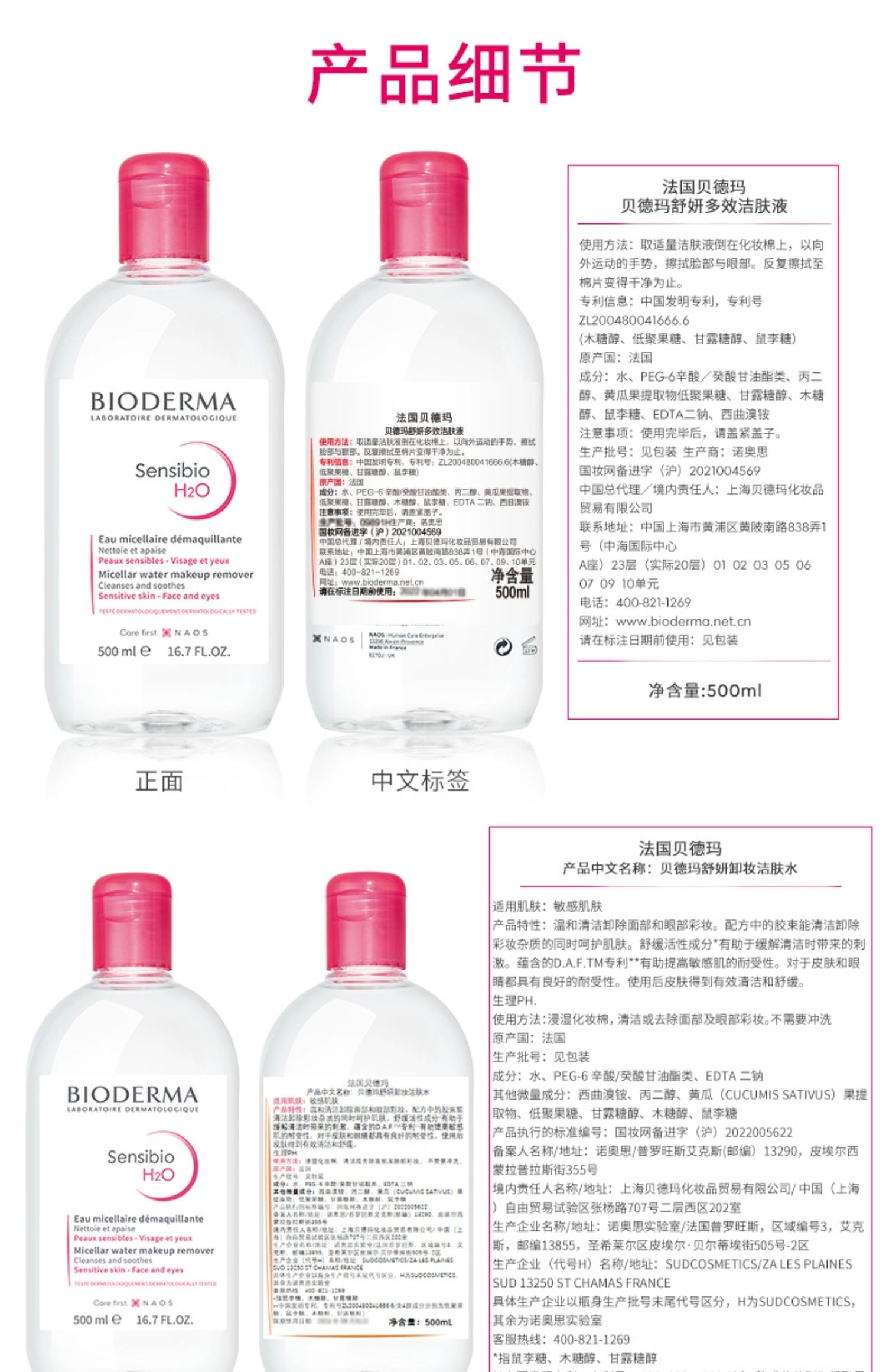 商品名称:【38现货】贝德玛舒妍卸妆水敏感肌粉水温和清洁旗舰店