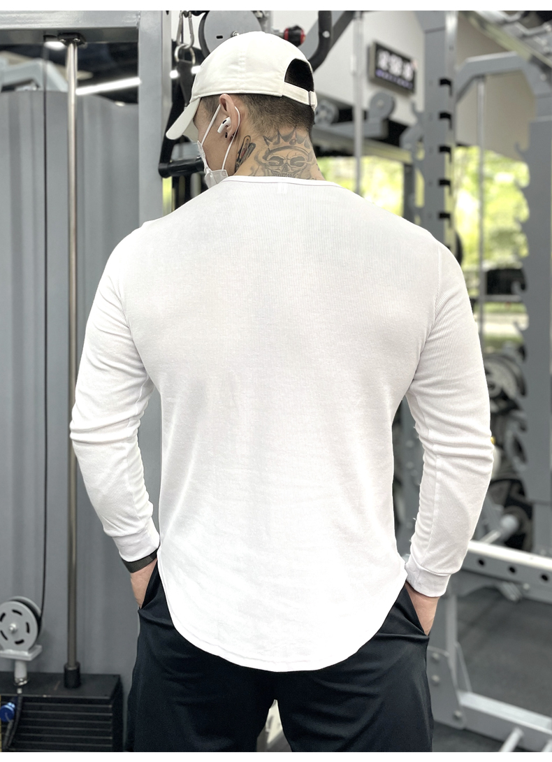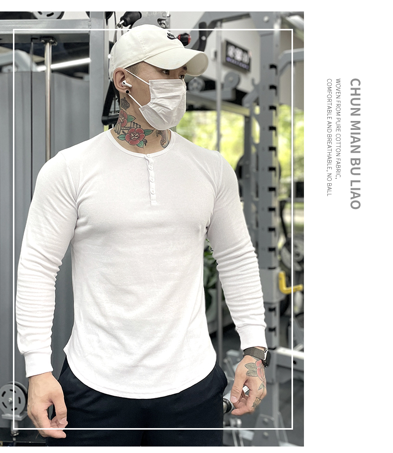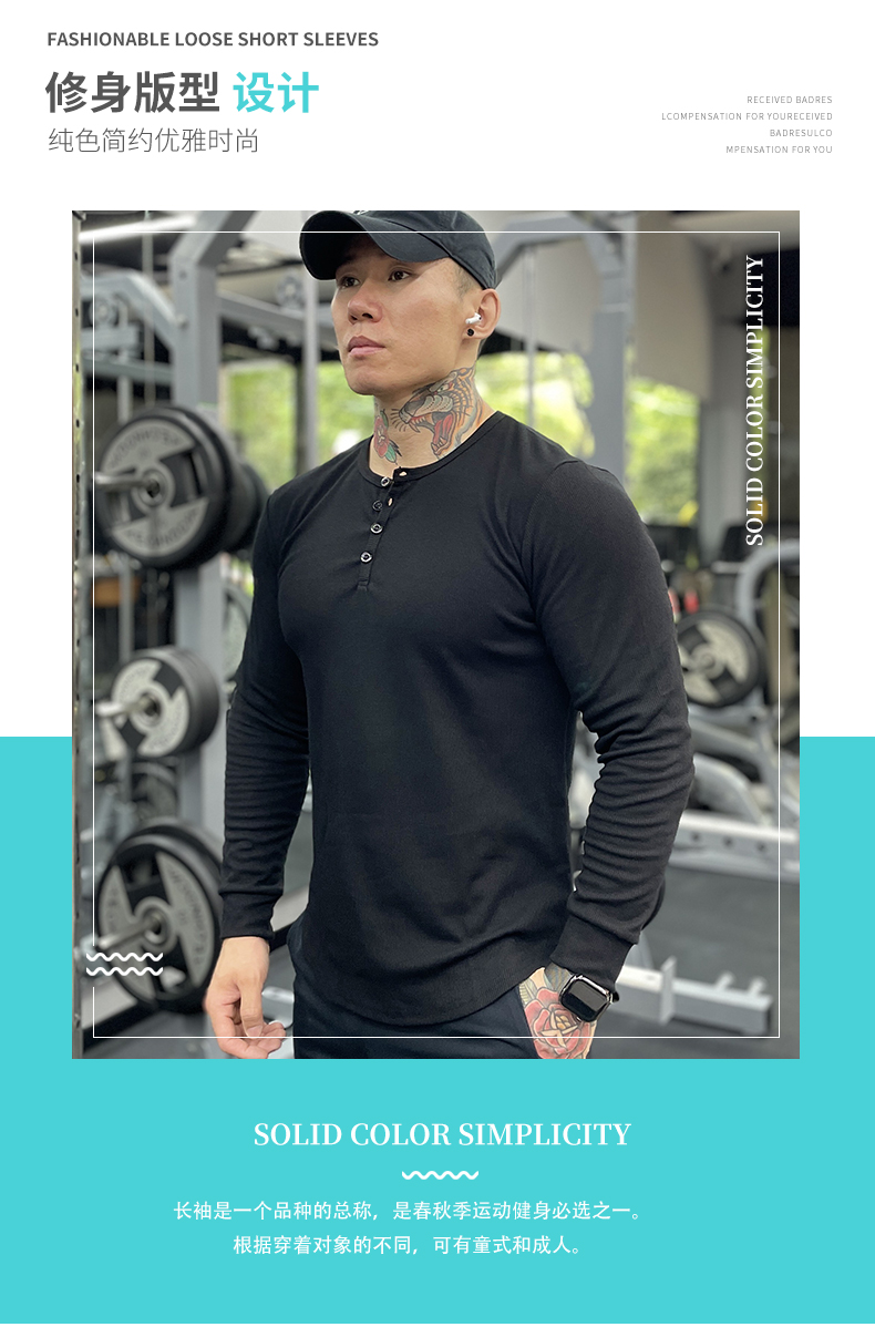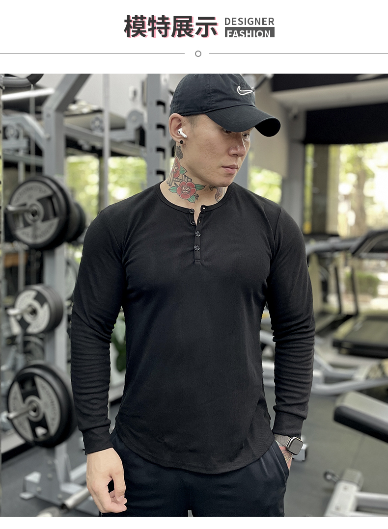 商品名称:美式运动长袖亨利打底衫男棉春秋修身弹力健身T恤休闲上衣训练服