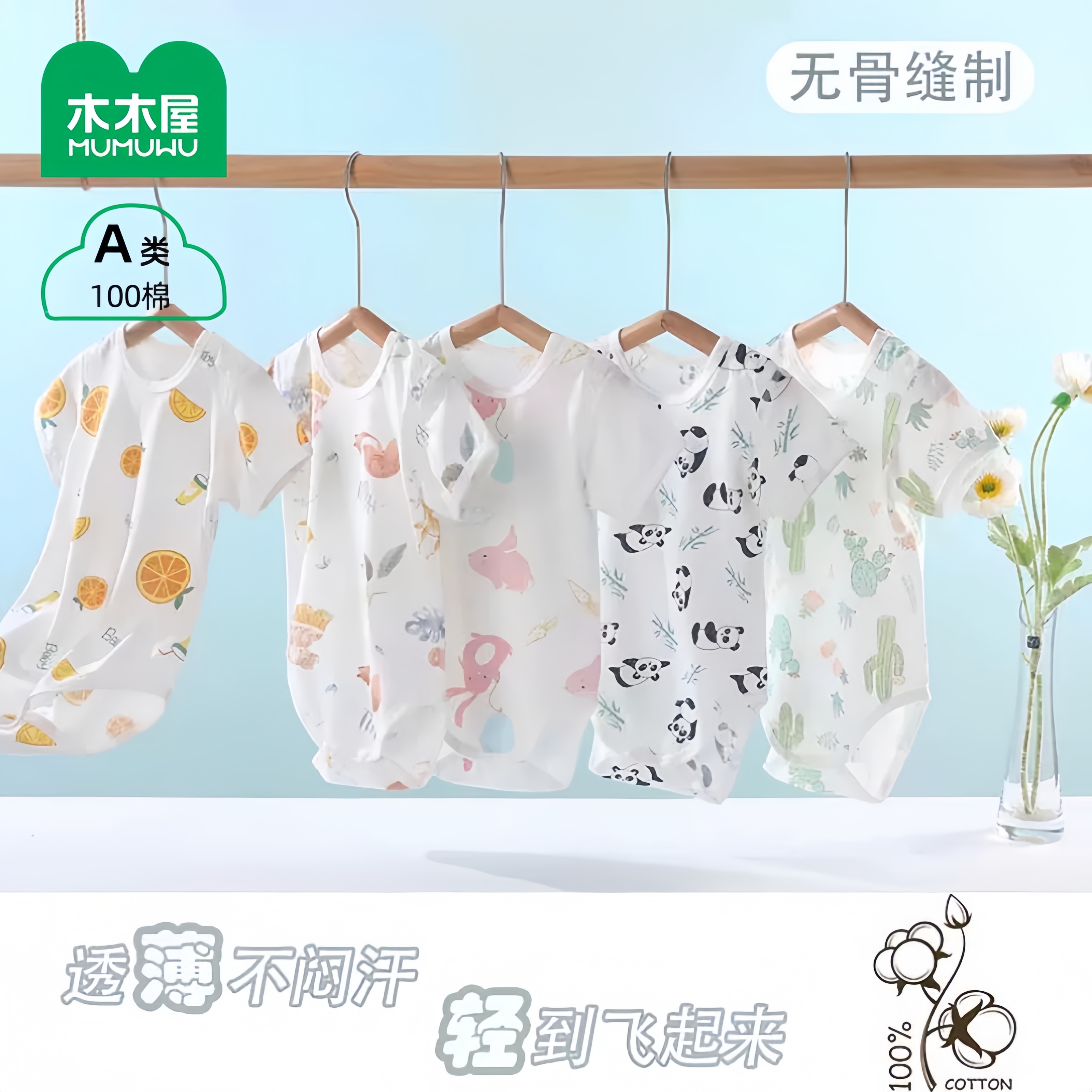 商品名称:木木屋婴儿包屁衣夏季薄款纯棉无骨新生儿连体衣a类短袖爬爬服