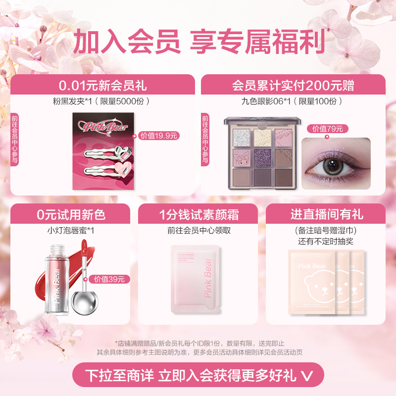商品介绍:【拍3件】pinkbear皮可熊贴贴唇泥共3支
