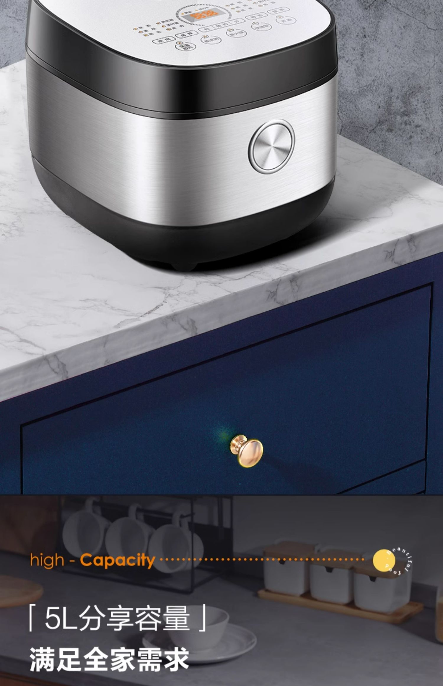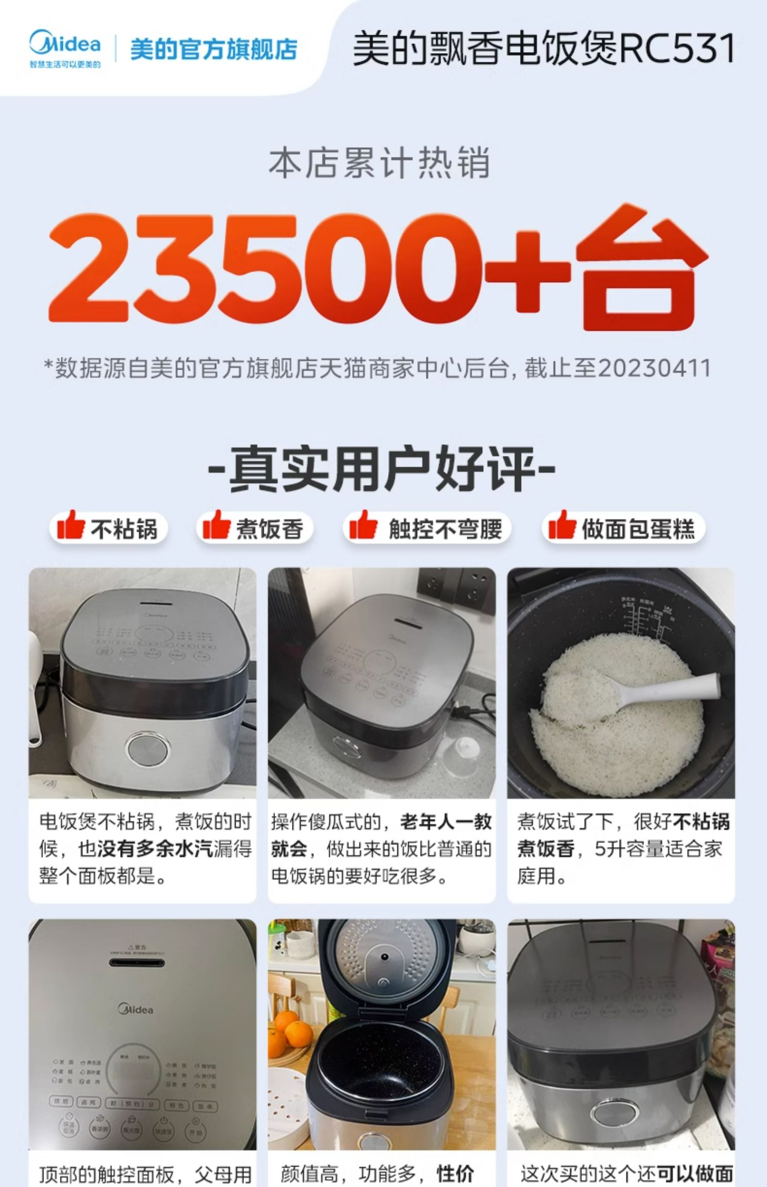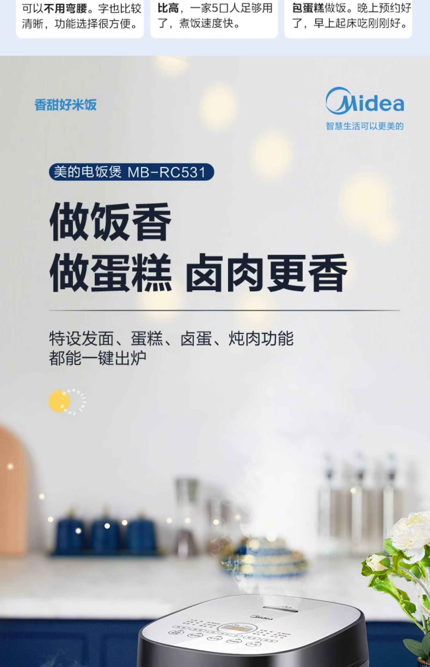 商品介绍:美的大容量电饭锅5升电饭煲