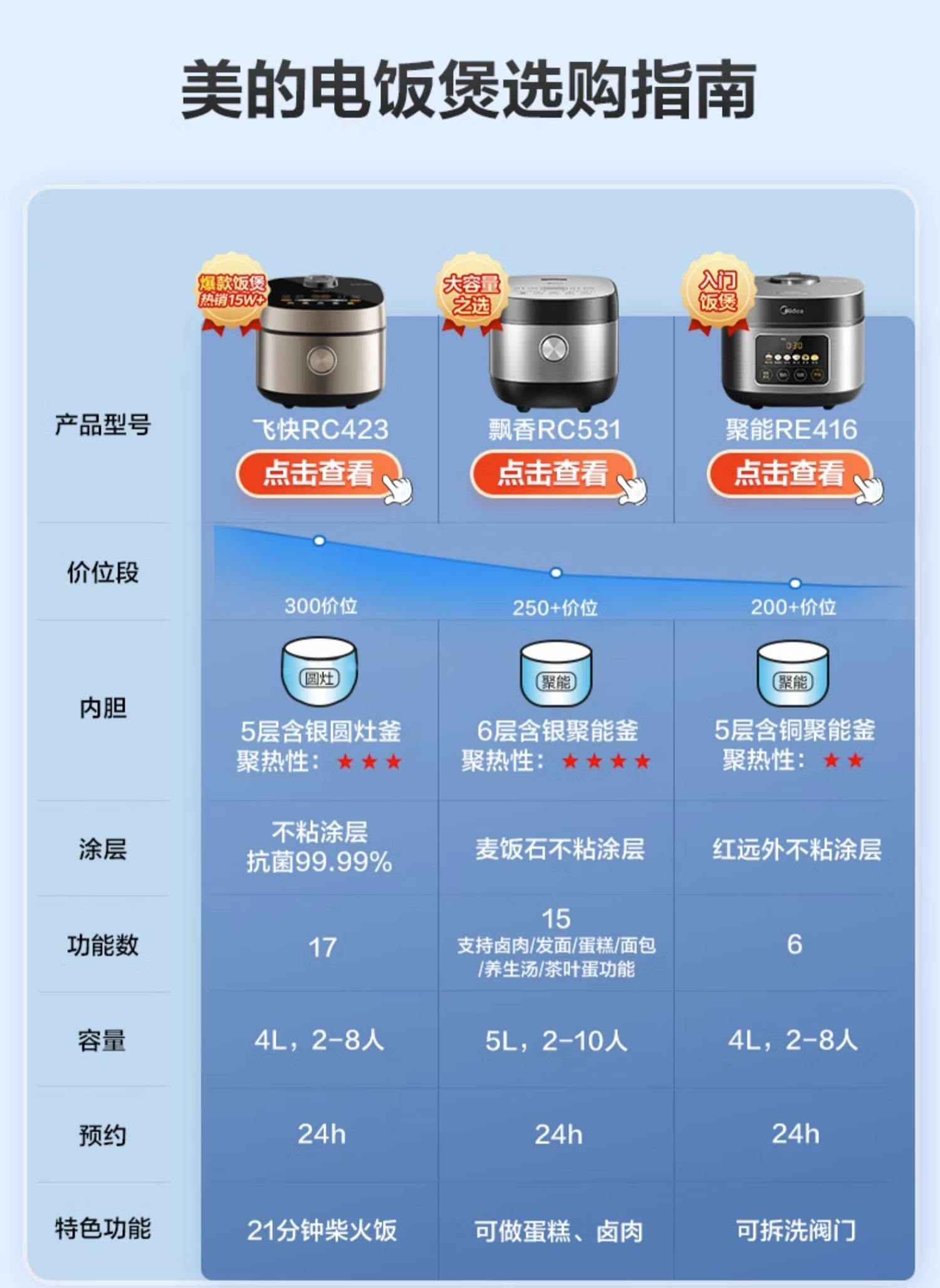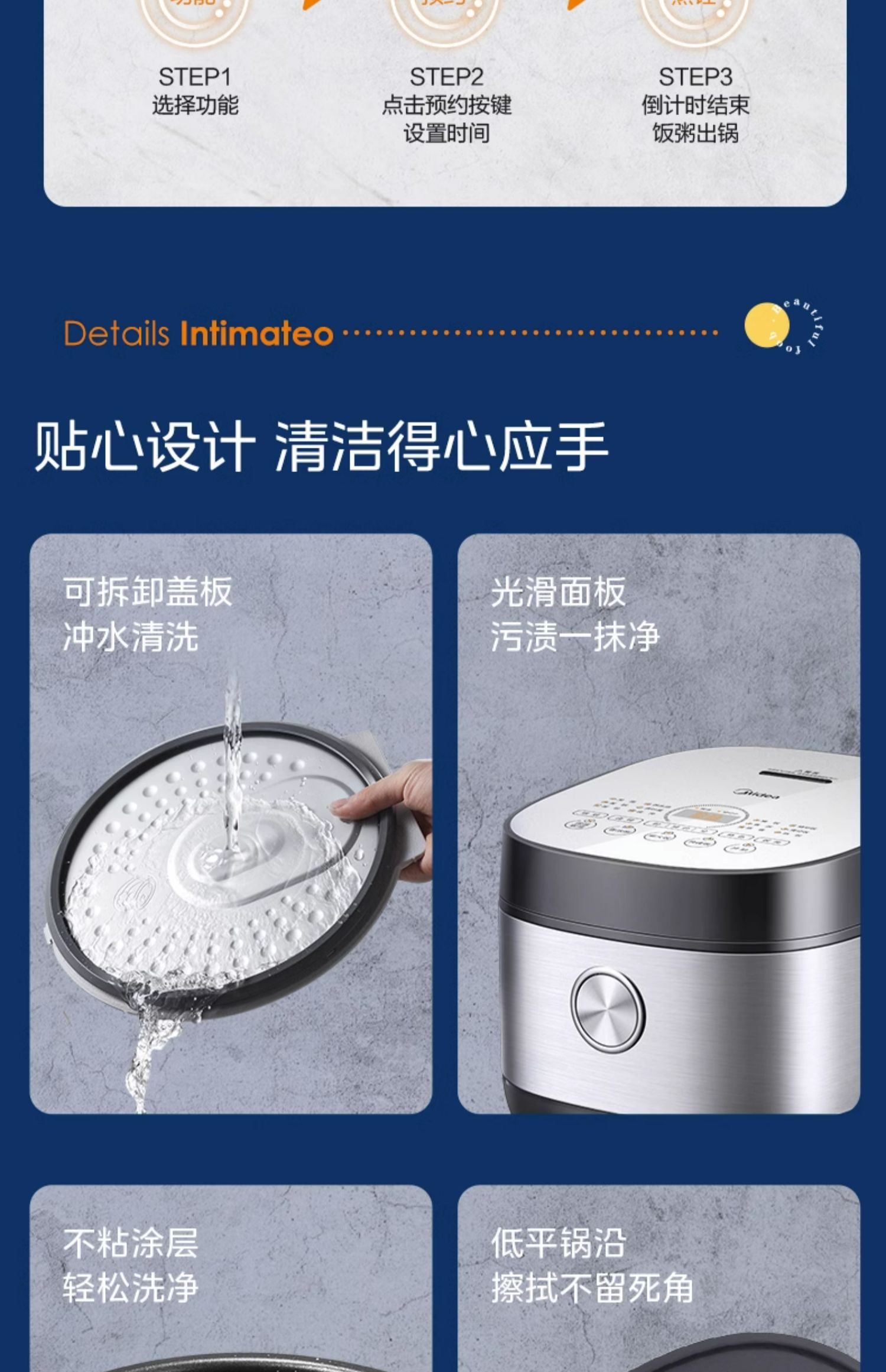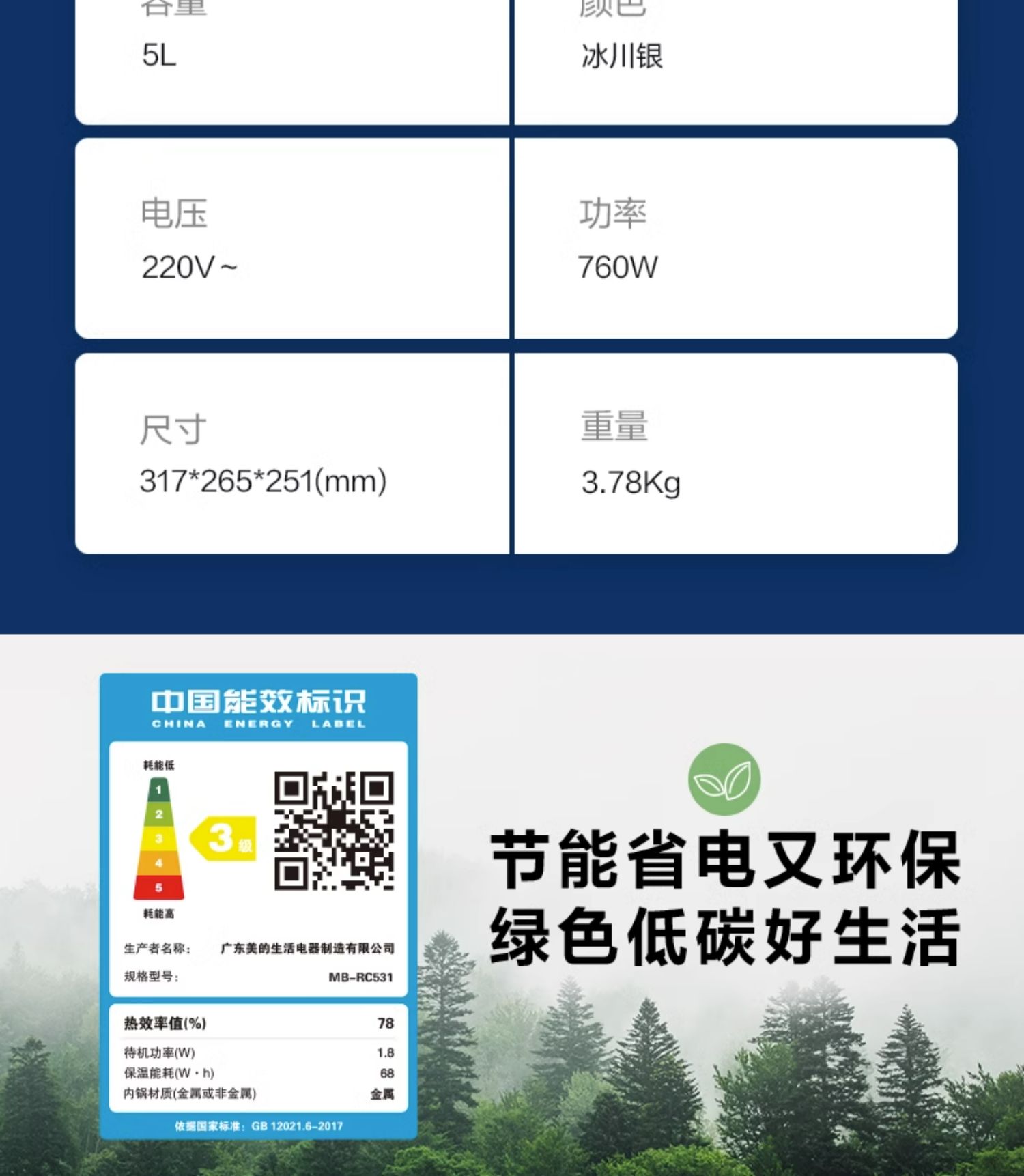 商品介绍:美的大容量电饭锅5升电饭煲
