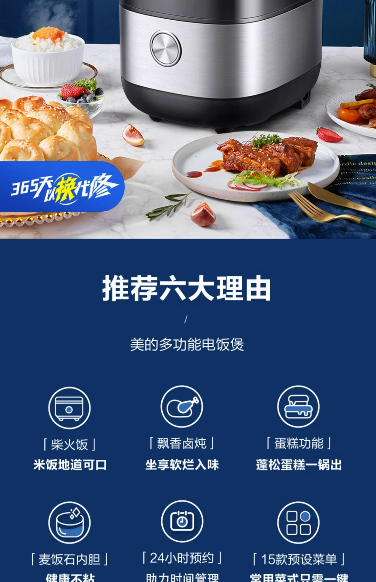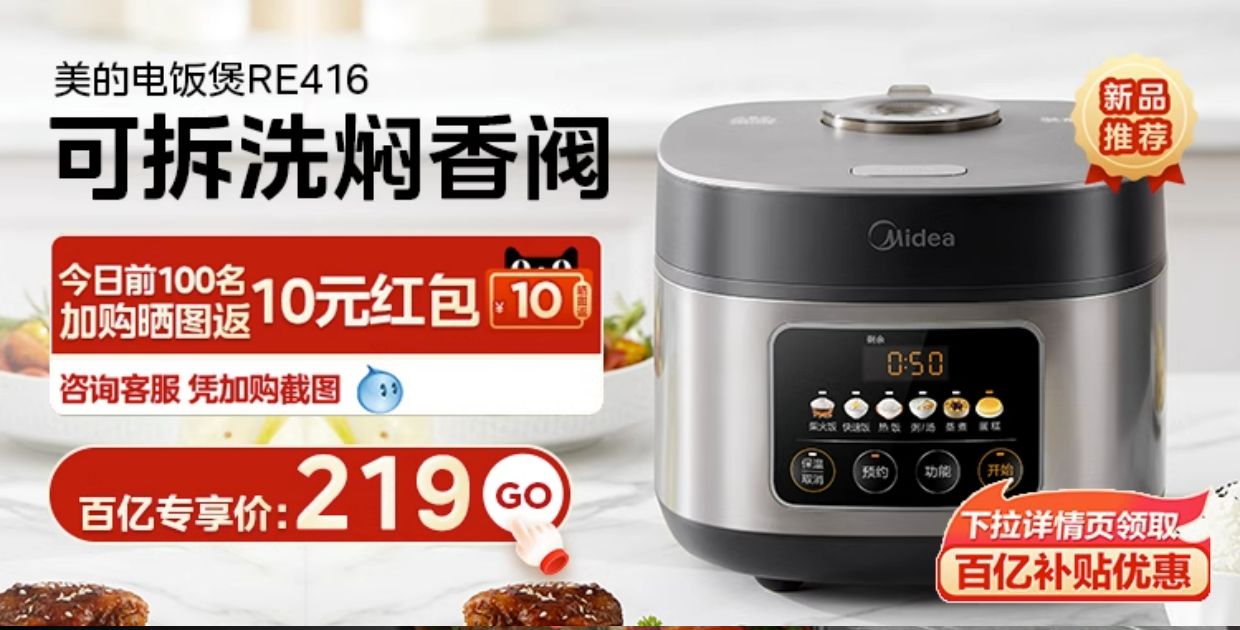商品简介:【88vip实付188.57元】美的官方旗舰店,365天以换代修,7天无理由退换,麦饭石内胆,24小时预约,柴火饭、飘香卤炖、蛋糕功能,15款预设菜单,做饭香,做蛋糕,卤肉更香~